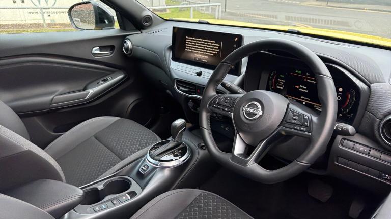 For sale is a Nissan Juke Hatchback 1.6 Hybrid N-Connecta 5dr Auto with just 5,674 miles, first registered on 09/09/2024. This striking crossover blends bold styling with intelligent technology to make every drive enjoyable and efficient. The N-Connecta trim comes with NissanConnect infotainment featuring a crisp touchscreen, Apple CarPlay and Android Auto for seamless smartphone integration, DAB digital radio, Bluetooth connectivity and USB ports, along with automatic climate control and keyless entry with push-button start to add everyday convenience. Advanced driver aids include ProPILOT Assist with intelligent cruise control and traffic sign recognition, and a rear-view camera with parking sensors to help with manoeuvring in tight spaces.Styling is unmistakably Nissan with its bold V-Motion grille, sleek LED headlights and 17-inch alloy wheels that give the Juke a confident, dynamic road presence, while the sculpted bodywork and contrasting roof design add a modern, sporty edge to its character. Inside, the cabin offers comfortable seating with synthetic leather trim and a multifunction steering wheel that keeps essential controls close at hand. Safety is a priority with features such as intelligent emergency braking with pedestrian and cyclist detection, lane departure warning, blind-spot monitoring and rear cross-traffic alert, all engineered to help protect you and your passengers.The efficient 1.6 Hybrid powertrain delivers an average of around 58.9 mpg combined on official WLTP figures, providing excellent economy for both urban journeys and longer trips. Buy with complete peace of mind from Vertu Nissan Glasgow Central, where every vehicle is meticulously prepared to our exceptionally high mechanical and cosmetic standards by our manufacturer-trained technicians. This Nissan Juke is available for test drive and immediate delivery, ready for you to enjoy from day one..Rear wiper, Rain sensor windscreen wipers, Rear privacy glass, One touch passenger window, Front and rear electric window with one touch driver window, Traction control, VDC Dynamic Vehicle Control, Hill start assist, Electronic Stability Programme (ESP), ABS with EBD and brake assist, Intelligent emergency braking with pedestrian and cyclist recognition, Electric handbrake with auto hold function, Wireless Smartphone charger, Voice recognition, Wireless Apple CarPlay and Google Android auto, WiFi connectivity, Power Steering, Rear parking sensor, Lane departure warning system, Front parking sensor, Traffic sign recognition, Intelligent lane intervention, Intelligent driver alert system, Drive modes select (Eco, normal and sport), EV mode switch, Stop/start button, Trip computer, Outside temperature sensor, Emergency and breakdown call, Nissan connect nav with TomTom traffic, e-Pedal step, 12.3"" full colour TFT screen combimeter
