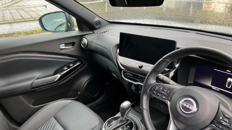 For sale: Nissan Juke 1.6 Hybrid Tekna 5dr Auto Hatchback with just 9,786 miles, first registered on 25/09/2025. This dynamic and efficient crossover offers bold styling, smart hybrid technology and an impressive suite of safety and connectivity features, making it a perfect choice for modern urban driving with an eco-conscious edge.The Juke Tekna stands out with its distinctive coupe-inspired design, sharp LED headlights, bold grille, and sleek alloy wheels, delivering eye-catching looks from every angle. Step inside and you're greeted by a premium interior featuring part-leather heated seats, a flat-bottomed leather steering wheel, ambient lighting, and a high level of refinement throughout. The intuitive 12.3” digital driver display and 8” touchscreen infotainment system provide seamless control of navigation, DAB radio, Apple CarPlay, Android Auto, and Bluetooth connectivity, keeping you informed and entertained on every journey.Powered by Nissan’s innovative hybrid technology, the 1.6 engine works alongside an electric motor to deliver smooth, responsive performance with excellent fuel economy and lower emissions—ideal for both city streets and longer motorway drives. The automatic transmission ensures a relaxed, efficient ride with instant torque and quiet operation.Safety is a key highlight in the Juke Tekna, equipped with Nissan’s Intelligent Mobility features including ProPILOT Assist, Intelligent Emergency Braking, Lane Keep Assist, Traffic Sign Recognition, Blind Spot Intervention and a 360-degree Around View Monitor, all working together to give you added confidence and control.At Vertu Nissan Glasgow Central, all our cars are prepared to the highest standards by manufacturer-trained technicians, giving you total peace of mind. This Juke is available now for immediate delivery and we welcome you to book a test drive today to experience its style, technology and performance first-hand..Rear wiper, Rear privacy glass, One touch passenger window, Front and rear electric window with one touch driver window, Traction control, VDC Dynamic Vehicle Control, Hill start assist, Electronic Stability Programme (ESP), ABS with EBD and brake assist, Intelligent emergency braking with pedestrian and cyclist recognition, Electric handbrake with auto hold function, Wireless Smartphone charger, Voice recognition, Wireless Apple CarPlay and Google Android auto, WiFi connectivity, Power Steering, Rear parking sensor, Lane departure warning system, Front parking sensor, Traffic sign recognition, Intelligent lane intervention, Intelligent driver alert system, Drive modes select (Eco, normal and sport), EV mode switch, Stop/start button, Trip computer, Outside temperature sensor, Emergency and breakdown call, Nissan connect nav with TomTom traffic, e-Pedal step, 12.3"" full colour TFT screen combimeter, Nissan connect 12.3"" touch screen entertainment system