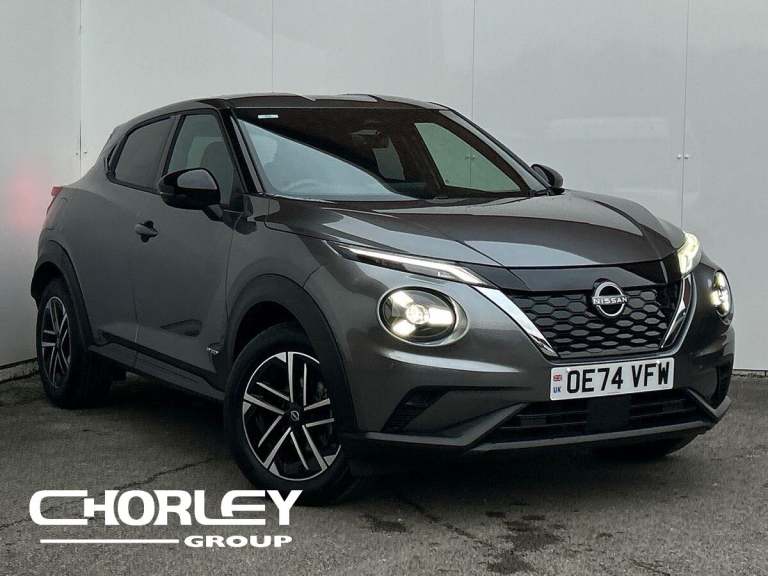 Available for you reserve online, this Nissan Juke N-Connecta finished in Gun Metallic presents a superb opportunity with its low mileage, and Nissan manufacturer approval, offering peace of mind. Inside, youll find a host of convenient features designed to enhance your journey, including Apple CarPlay/Android Auto for seamless connectivity, and a wireless smartphone charger. Parking is effortless with a rear view camera and front/rear parking sensors. Get guidance on the go with Sat Nav. Furthermore, the generous boot space ensures you have ample room for all your luggage and shopping needs. Above are only a few of our favourite features, but we know youll find your own when you get hands-on in branch. Why buy from us Heres our 5 point promise to you: Vehicle provenance check A minimum 3-month warranty A thorough multi-point inspection Full showroom valet before delivery Tyres, brakes and service to schedule You can also take advantage of our Chorley Care service that allows you to purchase additional warranty for total peace of mind. If youve got a part exchange, wed love to take it off your hands. Well do a professional appraisal and give you the best price guaranteed. You can also see how much your car could be worth via a free valuation tool on our website. Once youre happy, if youd like to purchase the car on finance, we have a range of flexible and affordable options with competitive APR rates that are 100% tailored to your needs. La...