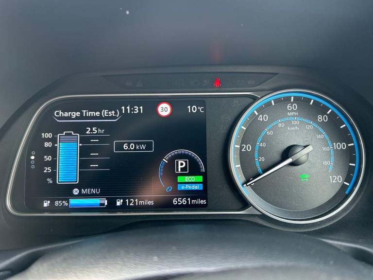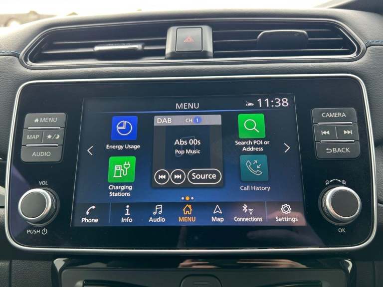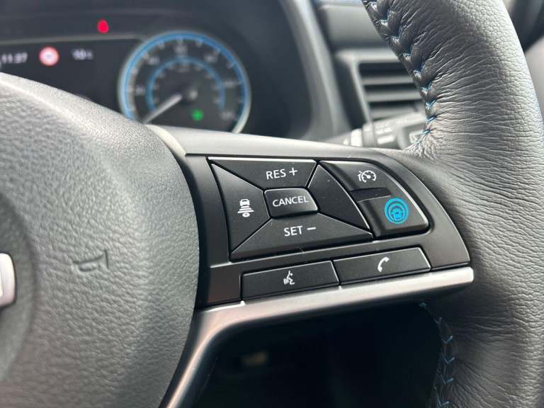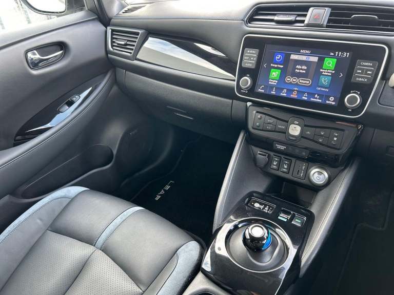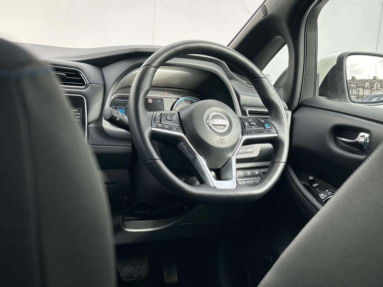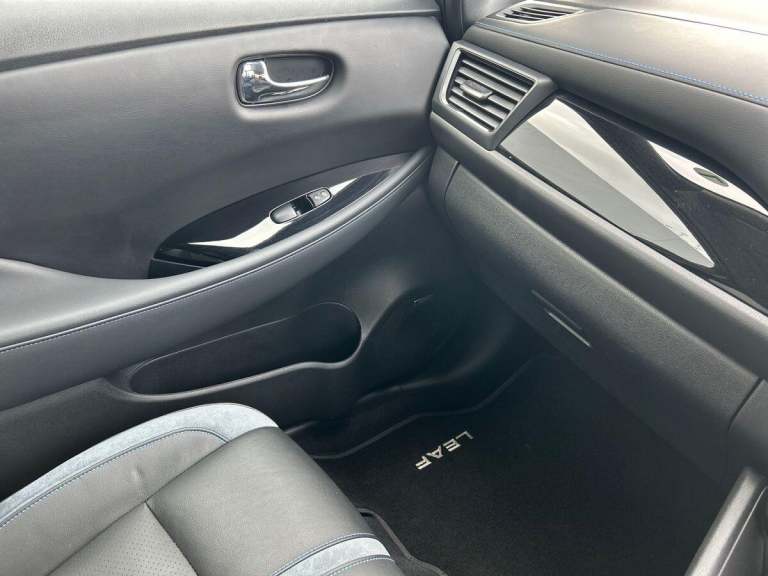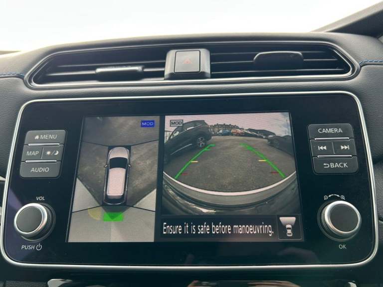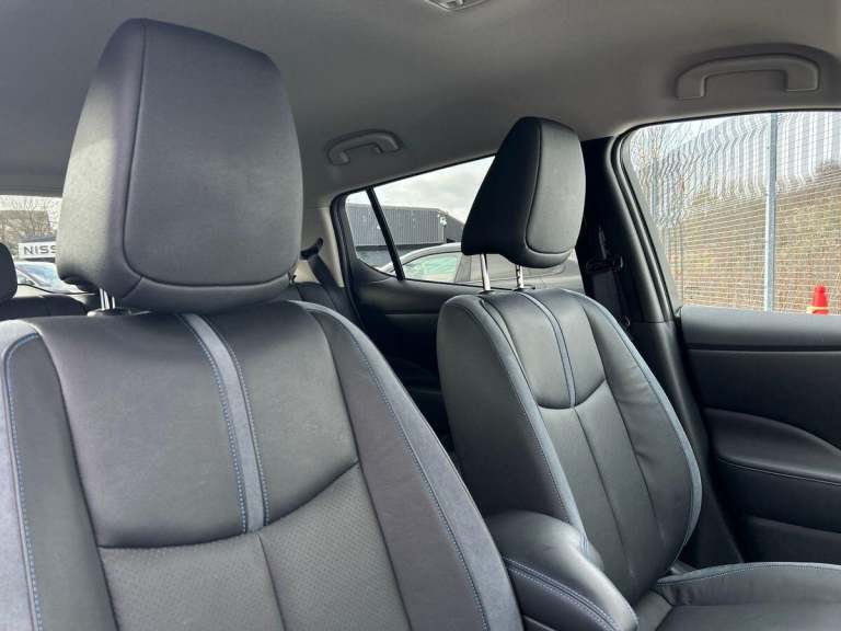 This 2024 Nissan Leaf Tekna is a Nissan manufacturer approved electric vehicle with exceptionally low mileage for its age, having covered just 6548 miles. It boasts a 41 kWh battery offering a maximum range of 168 miles when new, and benefits from a full service history. This Tekna model comes equipped with a BOSE Premium Audio System with 7 speakers, and Intelligent Cruise Control for a more relaxed driving experience, and Intelligent Auto Headlights, Further enhancing its appeal, this Nissan Leaf features a Tech Pack that includes a 360 degree camera system along with front and rear parking sensors, making manoeuvring effortless. You can seamlessly connect your smartphone using Android Auto and Apple CarPlay. Charging is convenient, with a full charge at home taking approximately 7 hours and 30 minutes on a 7kW charger, while rapid public charging can take the battery from empty to 80% in about 1 hour and 20 minutes. The generous boot space provides ample room for your luggage, highlighting its practicality for everyday use and longer journeys.