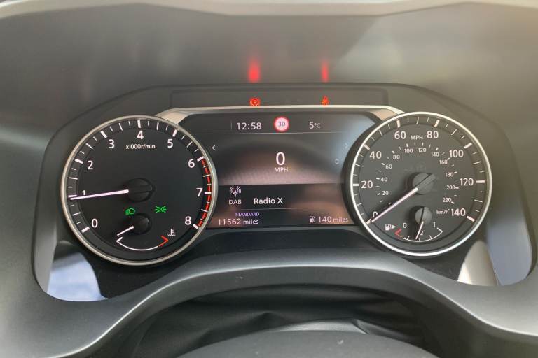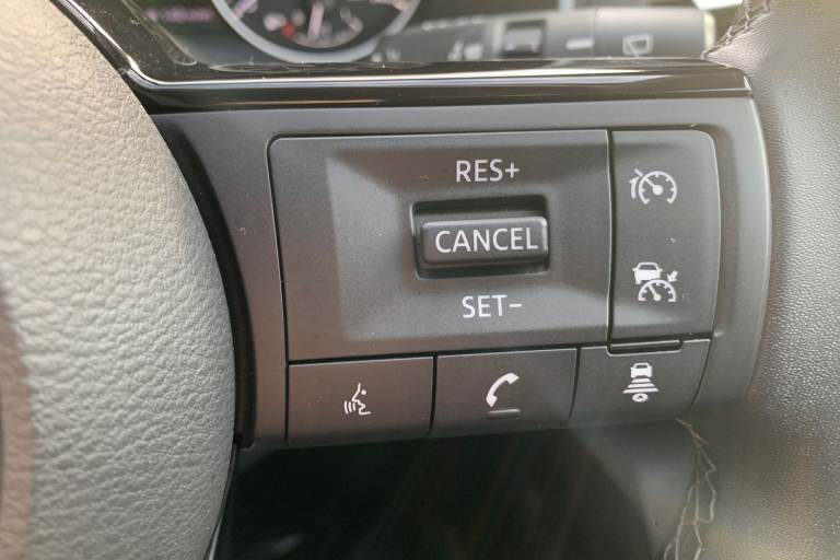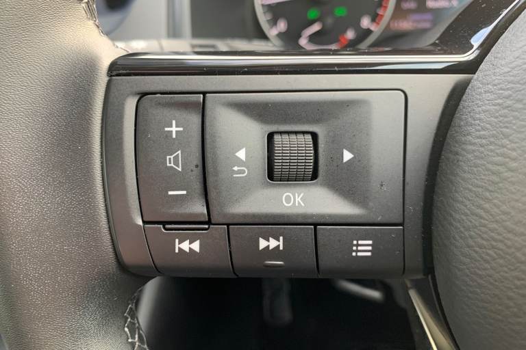..2 front USB-C ports, 7'' High definition full colour TFT screen combimeter, Blind spot intervention, Blind spot warning, Drive assist custom mode, Drive modes (sport, normal, eco), Driver drowsiness and attention warning, Electric speed sensitive power steering, Emergency and breakdown call, Emergency lane keep assist, Emergency Stop Signal (ESS), Engine start/stop button, Event data recorder, Idle stop/start system, Intelligent Cruise control (ICC), Intelligent forward collision warning, Intelligent speed assist, Lane departure warning system, Nissan connect 12.3 inch touchscreen infotainment system, Outside temperature sensor, Rear cross traffic alert, Rear parking sensors, Rear view camera, Reversing detection, Wireless Apple CarPlay and wired Android Auto, Limited slip differential, 6 speakers, AM/FM audio system with DAB, Bluetooth audio streaming, Auto rear wiper when reversing, Body colour mirror caps, Body coloured door handles, Bodyside mouldings, Chrome side window finisher, Electric auto folding door mirrors, Electrically adjustable and heated door mirrors with LED turn indicator, Follow me home headlights, High beam assist, Intelligent auto headlights, LED 3rd brake light, LED daytime running lights, LED Headlights, LED rear lights, One touch front and rear electric windows with remote opening and closing, One touch passenger window, Partially body coloured bumpers, Rear roof spoiler, Rear side wing doors, Shark fin antenna, Splash free rain sensing wipers, Three blink turn signal, 3 bench rear seats in 2nd row, 3 rear headrests, 60/40 split folding rear seat bench, Chrome interior door handles, Cloth upholstery, Dark headlining, Dual zone automatic climate control with pollen filter, Front door with bottle holders, Height adjustable front headrests, Leather shift knob, Luggage space lighting, Multifunction steering wheel, Passenger seat back pocket, Rear door bottle holders, Single front passenger seat, TEP steering wheel, Tilt/telescopic adjustable steering wheel, Two rear isofix child seat anchorage points with top tether, White ambient light (Partial area coverage), 3x3 point rear seatbelt pretensioners + load limiters, Autonomous emergency braking, Child locks on rear doors, Curtain and front side, far side airbags, Driver and passenger airbags, Driver, passenger and 2nd row rear seat belt reminder, Electric handbrake with auto hold function, Front seatbelt pretensioners + load limiters, Height adjustable front seatbelts, Hill start