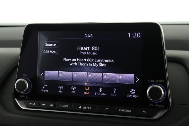 ..7'' High definition full colour TFT screen combimeter, Android auto/Apple CarPlay (Wired), Blind spot warning, Drive modes (sport, normal, eco), Electric speed sensitive power steering, Emergency and breakdown call, Idle stop/start system, Intelligent Cruise control (ICC), Intelligent driver alert system, Intelligent forward collision warning, Intelligent lane intervention, Lane departure prevention, Lane departure warning system, Maximum speed limiter, Nissan connect 8'' touchscreen infotainment system, Push button starter, Rear cross traffic alert, Rear parking sensors, Rear view camera, Traffic sign recognition with legal speed adjustment, Trip computer, 6 speakers, AM/FM audio system with DAB, Bluetooth audio streaming, Front USB connections (Type-A and Type-C), Auto dimming rear view mirror, Auto rear wiper when reversing, Automatic hazard signal with emergency stop signal, Body colour mirror caps, Body coloured door handles, Bodyside mouldings, Chrome side window finisher, Door handle with button, Electric auto folding door mirrors, Electrically adjustable and heated door mirrors with LED turn indicator, Follow me home headlights, High beam assist, Intelligent auto headlights, LED 3rd brake light, LED daytime running lights, LED Headlights, LED rear lights, One touch front and rear electric windows with remote opening and closing, Partially body coloured bumpers, Rear reversing light (bulb lighting), Rear roof spoiler, Rear side wing doors, Shark fin antenna, Splash free rain sensing wipers, Three blink turn signal, 12v power socket in dashboard and luggage, 2x Rear coat hooks, 3 bench rear seats in 2nd row, 3 rear headrests, 4 folding assist grip, 6-way manually adjustable driver's seat, 60/40 split folding rear seat bench, Centre console storage tray, Chrome interior door handles, Cloth monoform upholstery, Driver and front passenger sunvisors with illuminated vanity mirrors, Dual zone automatic climate control with pollen filter, Electrically adjustable lumbar support for driver, Front and rear door storage, Front centre console and armrest, Front cupholders x 2, Front door with bottle holders, Glovebox with light, Hard trunk cover, Height adjustable driver's seat, Height adjustable front headrests, Height adjustable passenger seat, Leather shift knob, Luggage space lighting, Manually adjustable passenger (slide recline + lifter), Multifunction steering wheel, Passenger seat back pocket, Rear armrest with 2 cupholders, Rear door bottle holders,