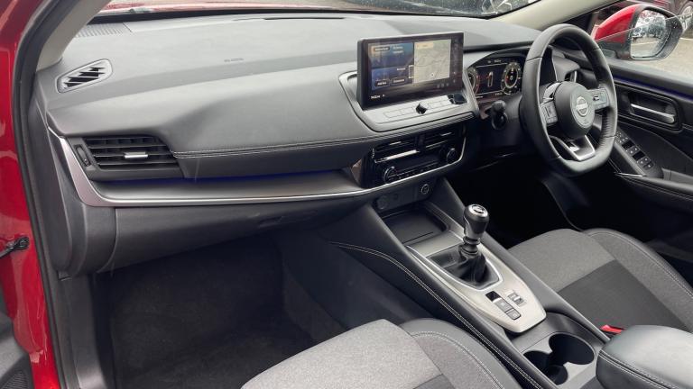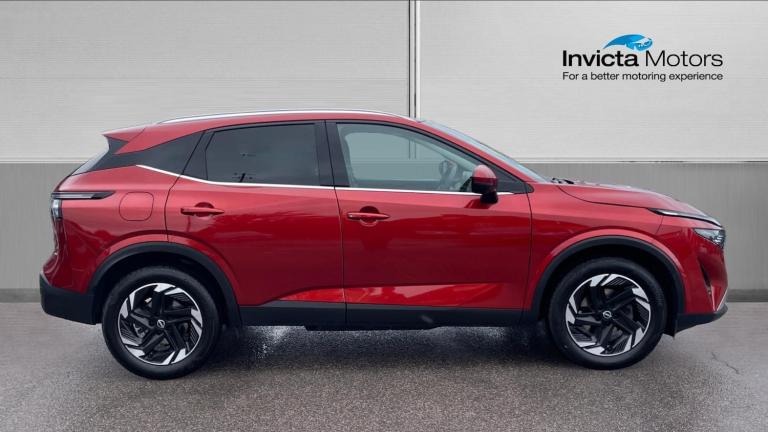 A stunning Nissan Qashqai N-Connecta finished in the pearlescent Fuji Sunset Red. Experience the exceptional with the Nissan Qashqai 1.3 DiG-T MH N-Connecta. Drive with confidence using our cutting-edge surround camera and blind spot alert system, ensuring every journey is as safe as it is comfortable. Stay seamlessly connected with a stunning 12.3-inch display featuring Apple CarPlay and Android Auto. Embrace the ease of cruise control on those long journeys, while dual-zone climate control maintains the perfect environment inside, no matter the weather outside. Even unexpected showers are no match for our rain-sensing wipers. Discover the Qashqai, where innovation meets style, and elevate your driving experience to new heights.