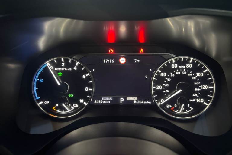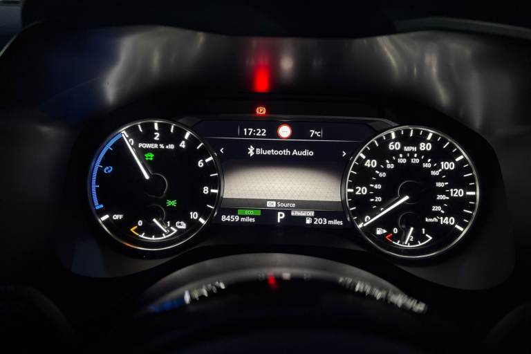 ..2 front USB-C ports, 7'' High definition full colour TFT screen combimeter, Blind spot intervention, Blind spot warning, Drive assist custom mode, Drive modes (sport, normal, eco), Driver drowsiness and attention warning, e-Pedal step, Electric speed sensitive power steering, Emergency and breakdown call, Emergency lane keep assist, Emergency Stop Signal (ESS), Engine start/stop button, EV mode switch, Event data recorder, Google virtual personal assistance, Idle stop/start system, In-car WIFI hotspot, Intelligent Cruise control (ICC), Intelligent forward collision warning, Intelligent speed assist, Lane departure warning system, Nissan connect 12.3 inch touchscreen infotainment system, Outside temperature sensor, Rear cross traffic alert, Rear parking sensors, Rear view camera, Reversing detection, Wireless Apple CarPlay and wired Android Auto, Limited slip differential, 6 speakers, AM/FM audio system with DAB, Bluetooth audio streaming, Auto rear wiper when reversing, Body colour mirror caps, Body coloured door handles, Bodyside mouldings, Chrome side window finisher, e-POWER badging, Electric auto folding door mirrors, Electrically adjustable and heated door mirrors with LED turn indicator, Follow me home headlights, High beam assist, Intelligent auto headlights, LED 3rd brake light, LED daytime running lights, LED Headlights, LED rear lights, One touch front and rear electric windows with remote opening and closing, One touch passenger window, Partially body coloured bumpers, Rear roof spoiler, Rear side wing doors, Shark fin antenna, Splash free rain sensing wipers, Three blink turn signal, 3 bench rear seats in 2nd row, 3 rear headrests, 60/40 split folding rear seat bench, Chrome interior door handles, Cloth upholstery, Dark headlining, Dual zone automatic climate control with pollen filter, e-POWER shifter, Front door with bottle holders, Height adjustable front headrests, Luggage space lighting, Multifunction steering wheel, Passenger seat back pocket, Rear door bottle holders, Single front passenger seat, TEP steering wheel, Tilt/telescopic adjustable steering wheel, Two rear isofix child seat anchorage points with top tether, White ambient light (Partial area coverage), 3x3 point rear seatbelt pretensioners + load limiters, Autonomous emergency braking, Child locks on rear doors, Curtain and front side, far side airbags, Driver and passenger airbags, Driver, passenger and 2nd row rear seat belt reminder, Electric handbrake with auto hold