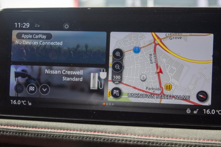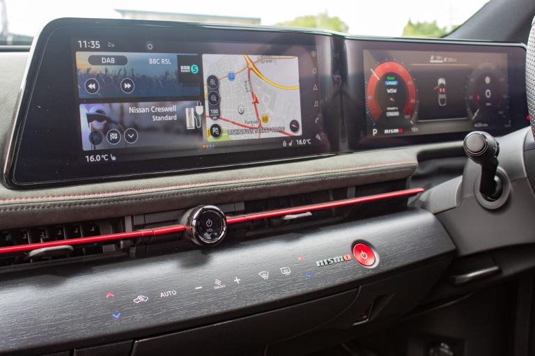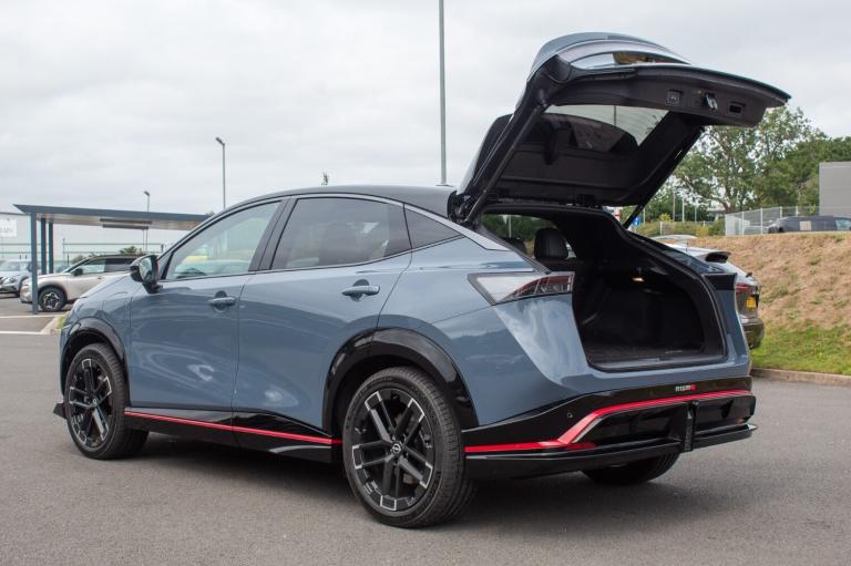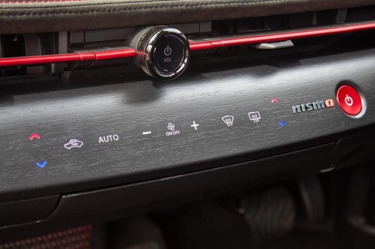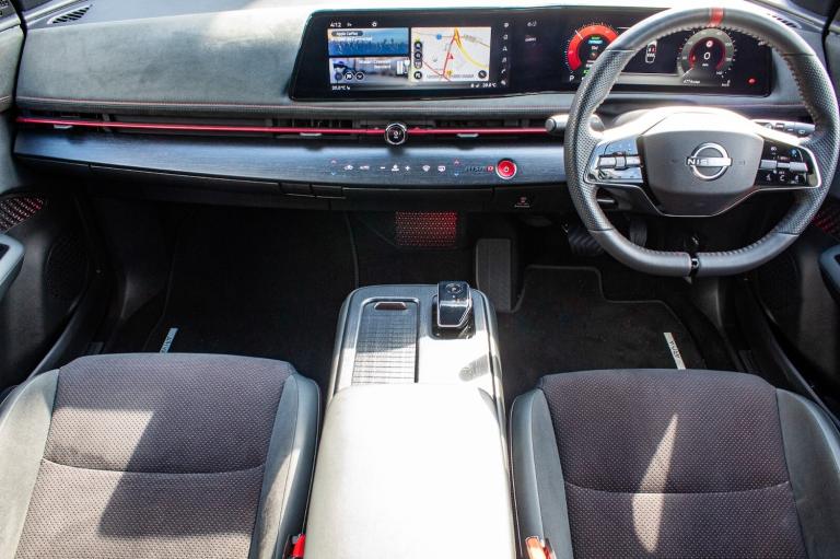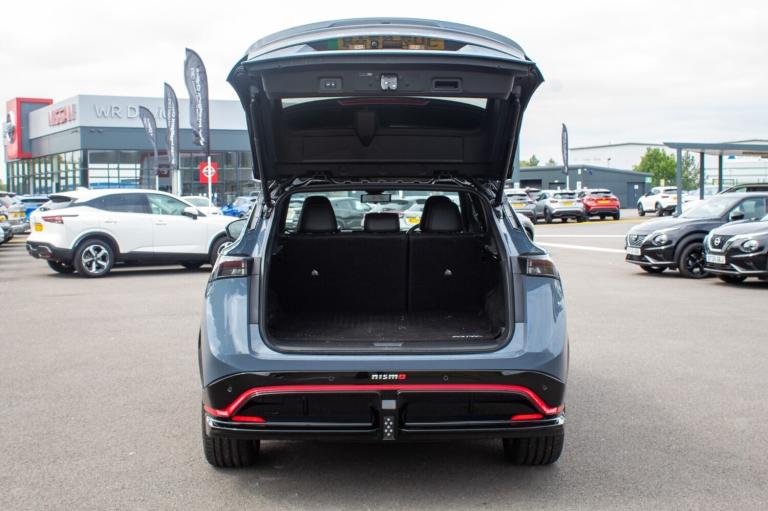 ..12.3'' Full TFT screen, 12.3'' navigation system with associated features and Nismo infographics, 360 degree digitally enhanced around view monitor, Adjustable speed limiter, Advanced driver distraction warning, Advanced windscreen head up display, Amazon alexa Integration, Blind spot intervention, Bluetooth audio streaming with handsfree system, Drive modes (Nismo, normal, eco), Emergency call service, Event data recorder, Front and rear parking sensors, Hands free power tailgate, Intelligent Cruise control (ICC), Intelligent driver alert system, Intelligent speed limit assist, Intelligent traffic jam pilot and lane keep assist, Lane departure prevention, Moving object detection, Navi-Link, PAS, Predictive forward collision warning, ProPilot assist, Rear cross traffic alert, Snow mode, Telematics - remote services, notifications and connectivity services, Traffic sign recognition, Virtual personal assistant and firmware over the air capability, Wireless Apple CarPlay and wired Android Auto, Wireless phone charger, 22kW onboard charger, 6m EVSE 3-pin cable, 6m Type 2 cable, 87kWh Usable Battery Capacity, All Wheel Drive (AWD), Dual motor, Liquid cooling and heating, Manual battery preconditioning, Max DC charging power: up to 130kW, Nismo sports suspension, Bose audio system with 10 speakers, DAB audio, Front and rear USB connections (Type-A and Type-C), Anodized red metal dash finisher, Automatic LED headlights, Dark matt chrome window mouldings, Follow me home headlights, Green tinted glass, Heated and auto folding door mirrors, Heated front windscreen, High beam assist, Intelligent Rear View Mirror, LED 3rd brake light, LED daytime running lights, LED front fog lights, LED rear lights, Nismo centre LED rear fog lights, Nismo ducktail rear spoiler, Nismo red accent line, One touch front and rear electric windows with remote opening and closing, Rain sensing wipers, Rear privacy glass, Rear side wing doors, Rear wiper, Shark fin antenna, Super UV and infrared cut glass, Tailgate e-4ORCE badge, Two tone paint, Variable front intermittent wipers, 12v socket in front, 3 rear head restraints, 3 seat bench in 2nd row, 6 way electrically adjustable front seats, 60/40 split folding rear seat, Automatic dual zone climate control, Central storage under dashboard, Driver's electric lumbar adjustment, Front e-4ORCE entry guards, Front head restraints, Heat pump, Heated front seats, Heated steering wheel, ISOFIX on front passenger and rear outer seats, Luggage