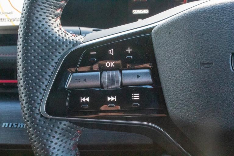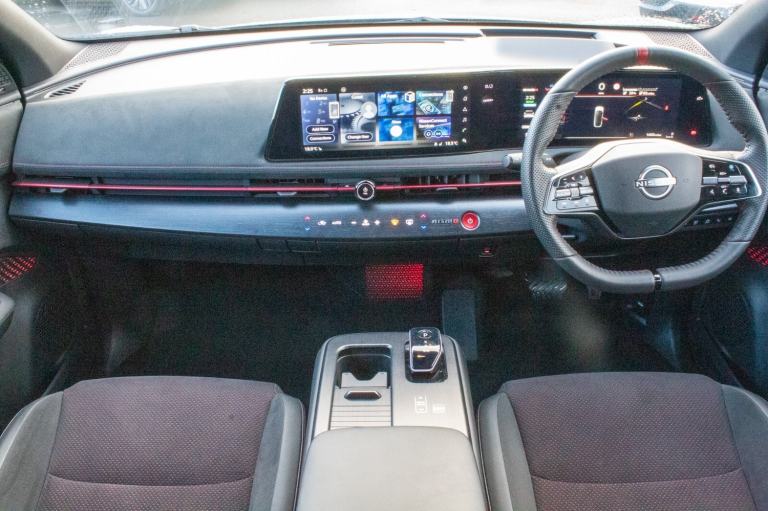 ..12.3'' Full TFT screen, 12.3'' navigation system screen, 360 degree digitally enhanced around view monitor, Adjustable speed limiter, Advanced windscreen head up display, Amazon alexa Integration, Blind spot intervention, Bluetooth audio streaming with handsfree system, Drive modes (Nismo, normal, eco), Emergency call service, Event data recorder, Front and rear parking sensors, Hands free power tailgate, Intelligent Cruise control (ICC), Intelligent driver alert system, Intelligent speed limit assist, Intelligent traffic jam pilot and lane keep assist, Lane departure prevention, Moving object detection, Navi-Link, PAS, Predictive forward collision warning, ProPilot assist, Rear cross traffic alert, Snow mode, Telematics - remote services, notifications and connectivity services, Traffic sign recognition, Virtual personal assistant and firmware over the air capability, Wireless Apple CarPlay and wired Android Auto, Wireless phone charger, 22kW onboard charger, 6m EVSE 3-pin cable, 6m Type 2 cable, 87kWh Usable Battery Capacity, All Wheel Drive (AWD), Dual motor, Liquid cooling and heating, Manual battery preconditioning, Max DC charging power: up to 130kW, Nismo sports suspension, Bose audio system with 10 speakers, DAB audio, Front and rear USB connections (Type-A and Type-C), Anodized red metal dash finisher, Automatic LED headlights, Dark chrome window surround, Follow me home headlights, Heated and auto folding door mirrors, Heated front windscreen, High beam assist, Intelligent Rear View Mirror, LED 3rd brake light, LED daytime running lights, LED front fog lights, Nismo centre LED rear fog lights, Nismo ducktail rear spoiler, Nismo red accent line, One touch front and rear electric windows with remote opening and closing, Rain sensing wipers, Rear privacy glass, Rear side wing doors, Rear wiper, Shark fin antenna, Super UV and infrared cut glass, Tailgate e-4ORCE badge, Two tone paint, Variable front intermittent wipers, 12V socket in front, 3 rear head restraints, 3 seat bench in 2nd row, 6 way electrically adjustable front seats, 60/40 split folding rear seat, Automatic dual zone climate control, Central storage under dashboard, Driver's electric lumbar adjustment, Front e-4ORCE entry guards, Front head restraints, Heat pump, Heated front seats, Heated steering wheel, ISOFIX on front passenger and rear outer seats, Luggage board system, Nismo red LED ambient lighting, Nismo unique leather steering wheel, Plasma cluster ion air purifier, Rear air