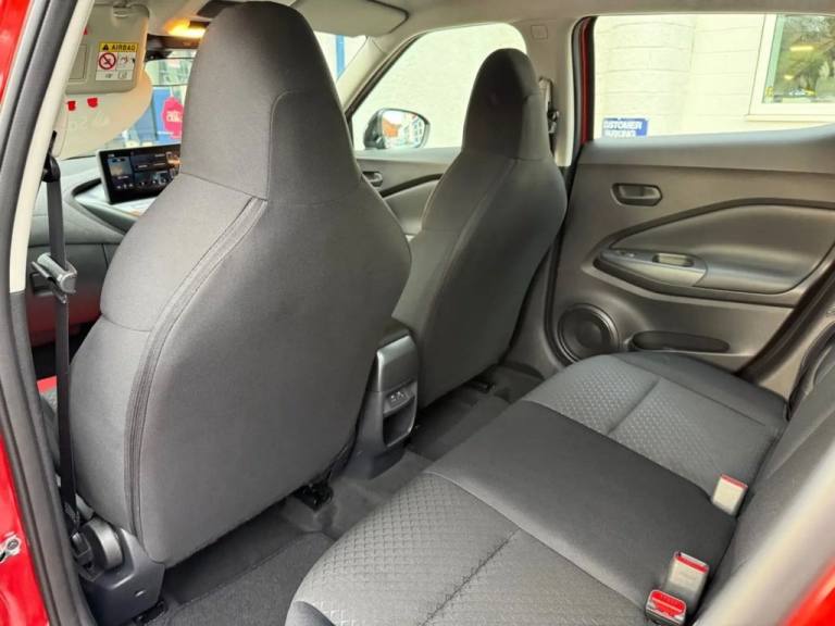 ONLY 955 MILES FROM NEW WITH BALANCE OF NISSANS 3 YEAR WARRANTY UNTIL SEPTEMBER 2028, AIR CONDITIONING, CENTRAL LOCKING, ELECTRIC WINDOWS, CAR PLAY, ALLOY WHEELS, CRUISE CONTROL, REAR PARKING CAMERA.17in Flex Wheels - Sakura, 3 Adjustable Rear Head Restraints, 4 Speakers, 60-40 Split Folding Rear Seats, 7in Full Colour TFT Screen Combimeter, ABS with EBD and Brake Assist, Active Ride Control, Active Trace Control, Airbag - Driver, Airbag - Front Passenger, Apple CarPlay and Google Android Auto, Automatic Hazard Signal and Emergency Stop Signal, Bluetooth Connectivity with USB A+C Ports, Cabin Light Front and Rear, Cruise Control and Speed Limiter, DAB Radio, Door Handles Body Coloured, Driver and Passenger Sun Visor with Vanity Mirror, Driver-Passenger and Rear Seatbelt Reminder, ESP - Electronic Stability Programme, Electric Handbrake with Auto Hold Function, Electronically Adjustable Door Mirrors with Integrated Indicators, Emergency and Breakdown Call, Exterior Mirrors Painted Pearl Black, Follow Me Home Headlights, Front Armrest, Front Doors with Bottle Holders, Front and Rear Electric Windows with One Touch Driver Window, Height Adjustable Driver Seat, Height Adjustable Seatbelts, High Beam Assist, Hill Start Assist, Intelligent Driver Alertness, Intelligent Emergency Braking with Pedestrian and Cyclist Recognition, Intelligent Lane Intervention, Interior Chrome Door Handles, LED Daytime Running Lights, LED Headlights, LED Rear Fog Light, LED Rear Lights, Lane Departure Warning, Luggage Space Lighting, Manual Air Conditioning, Monoform Sporty Seats, Multifunctional Steering Wheel, NissanConnect 12.3in Touchscreen Entertainment System, Outside Temperature Sensor, Power Steering, Puncture Repair Kit, Rear Console USB Port, Rear Spoiler, Rear View Camera, Shark Fin Antenna - Solid Black, Side and Curtain Airbags, Smooth Synthetic Leather Steering Wheel, TPMS - Tyre Pressure Monitoring System, Telescopic Steering Wheel Adjustment, Three Blink Turn Signal, Traffic Sign Recognition, Two Cup Holders in the Centre Console, Two Rear ISOFIX Child Seat Anchorage Point with Top Tether, VDC - Vehicle Dynamic Control, Welcome Light and Console Tray Ambient Lighting, WiFi and Voice Recognition
