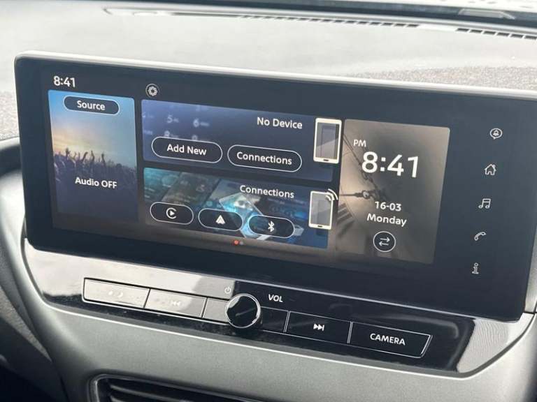 [DriverConvenience]Welcome light and console tray ambient lighting 7 full colour TFT screen combimeter, Cruise control + speed limiter, Emergency and breakdown call, Idle start/stop system, Intelligent driver alert system, Intelligent lane intervention, Lane departure warning system, Nissan connect 12.3 touch screen entertainment system, Outside temperature sensor, Power Steering, Rear view camera, Traffic sign recognition, Trip computer, Voice recognition, WiFi connectivity, Automatic hazard signal with emergency stop signal, Body colour door handles, Electrically adjustable door mirrors with integrated indicators, Follow me home headlights, Front and rear electric window with one touch driver window, High beam assist, LED 3rd brake light, LED daytime running lights, LED headlamps, LED rear fog lamp, LED rear lamps, Manual dimming framed interior rear view mirror, Pearl black door mirrors, Rear side wing doors, Rear wiper, Roof spoiler, Shark fin roof antenna in solid Black, Three blink turn signal 3 height adjustable rear headrests, 3 seat bench in 2nd row, 60/40 split folding rear seat, Cloth upholstery, Driver/passenger sunvisors and vanity mirrors, Front and rear cabin lights, Front armrest, Front door pockets with bottle holders, Front head restraints, Height adjustable driver's seat, Luggage space lighting, Monoform sporty seats, Multifunction steering wheel, Rear door bottle holders, Single front passenger seat, Smooth synthetic leather steering wheel, Telescopic