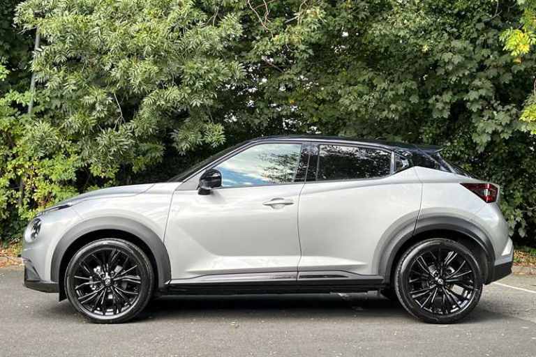 Brayleys Stockport are delighted to offer the Nissan Juke N-Sport. A sophisticated compact SUV that excels in practicality and performance. Its responsive handling and fuel-efficient engine make it ideal for daily driving. This excellent example is finished in Blade Silver metallic paint with a Pearl Black roof. Specification - The N-Sport trim provides a premium touch with features such as; Nissan Connect Satellite Navigation system, 360 Degree cameras, Front and rear parking sensors, Cruise control, Pro Pilot, Bose Personal audio system, 3 x Drive modes (Normal, Sport, Eco), Heated front seats, Wireless Apple CarPlay and Android Auto, Wireless smartphone charger, Bluetooth, DAB, WIFI connection, Voice recognition, Ambient lighting, Automatic climate control, ISOFIX, Electric handbrake with auto hold function, 19"" Akari Black alloy wheels, Automatic lights, Rain sensing windscreen wipers, Privacy glass and so much more! Safety - This vehicle comes equipped with a range of driver-assist technology, giving you peace of mind on the road. The best safety features include; Hill start assist, Intelligent lane intervention, Traffic sign recognition, Intelligent emergency braking with pedestrian and cyclist recognition, Lane departure warning system and more. Get in touch to speak with our friendly and knowledgeable team to book a test drive, organise a live video viewing or personalised finance quote. Welcome to Brayleys Stockport where all of our APPROVED USED vehicles come with a 100 POINT INSPECTION carried out by one of our EXPERTLY TRAINED NISSAN TECHNICIANS – Plus a MINIMUM OF 12 MONTHS COMPREHENSIVE WARRANTY AND 1 YEARS GOLD RAC COVER FOR YOUR PEACE OF MIND. There is also 2 YEARS SERVICING and 3 YEARS GOLD RAC cover included for FREE when financed through Nissan PCP Finance. Nissan vehicles only (T&C’s Apply) Brayleys – Together we drive
