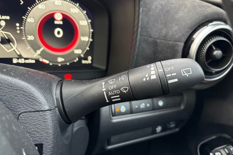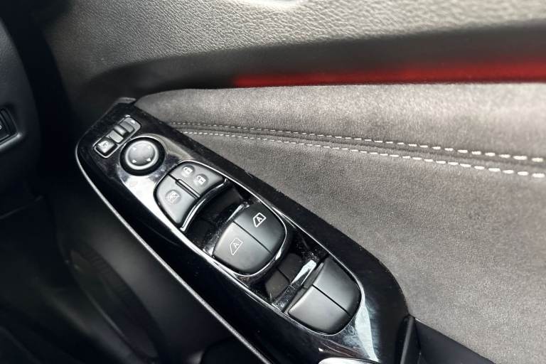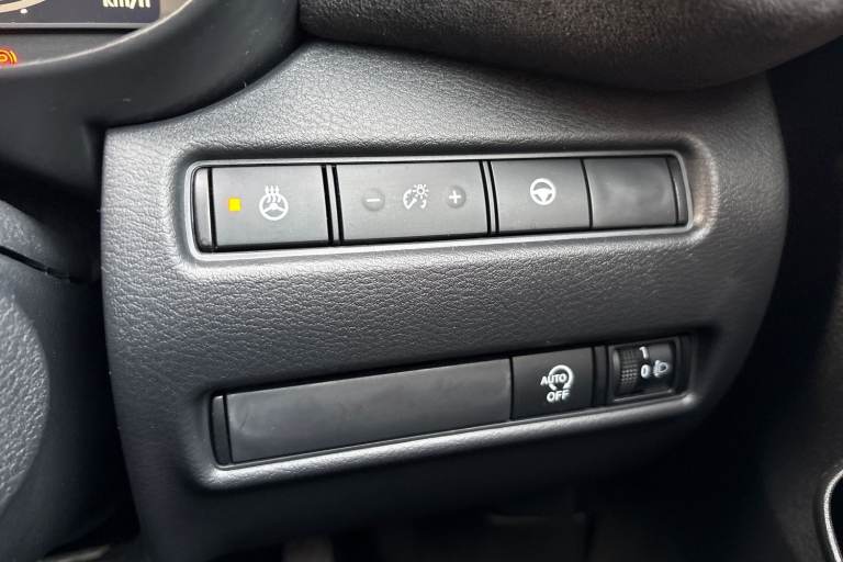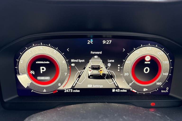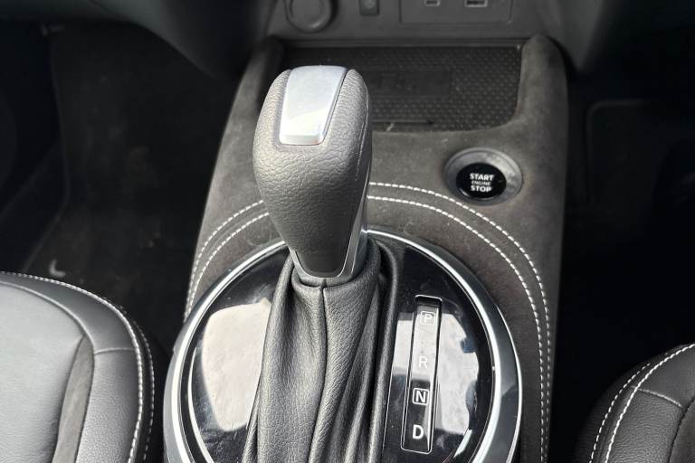 ..12.3'' full colour TFT screen combimeter, Drive modes select (Eco, normal and sport), Emergency and breakdown call, Front parking sensor, Idle start/stop system, Intelligent driver alert system, Intelligent lane intervention, Lane departure warning system, Nissan connect 12.3'' touch screen entertainment system, Nissan connect nav with TomTom traffic, Nissan connect services, Outside temperature sensor, Power Steering, Rear parking sensor, Stop/start button, Traffic sign recognition, Trip computer, Voice recognition, WiFi connectivity, Wireless Apple CarPlay and Google Android auto, Wireless Smartphone charger, 10 Bose speakers 8 speakers and 2 headrest speakers for driver/passenger seats, 2 X Rear console USB port, Bluetooth system, USB, Aux-in and 12V socket, Bose personal plus audio system, DAB Digital radio, Auto dimming frameless rear view mirror, Automatic hazard signal with emergency stop signal, Body colour door handles, Electrically adjustable door mirrors with integrated indicators, Follow me home headlights, Front and rear electric window with one touch driver window, High beam assist, LED 3rd brake light, LED daytime running lights, LED front fog lights, LED headlamps, LED rear fog lamp, LED rear lamps, One touch passenger window, Rear privacy glass, Rear side wing doors, Rear wiper, Roof spoiler, Shark fin roof antenna in solid Black, Solid black door mirrors, Solid black front bumper/rear bumper and side skirts inserts, Three blink turn signal, 3 height adjustable rear headrests, 3 seat bench in 2nd row, 60/40 split folding rear seat, Card holder on driver sunvisor, Door ambient lighting, Driver seat back pocket, Driver side rear coat hanger, Driver/passenger sunvisors and vanity mirrors, Front and rear cabin lights, Front armrest, Front door pockets with bottle holders, Front head restraints, Front/rear passenger grab handles, Gear console ambient circle lighting, Height adjustable driver's seat, Internal chrome door handles, Luggage board, Luggage space lighting, Monoform sporty seats, Multifunction steering wheel, Passenger seat back pocket, Rear door bottle holders, Single front passenger seat, Smooth synthetic leather steering wheel, Steering wheel mounted gearshift paddles, Synthetic leather kneepad, Synthetic leather shift knob, Telescopic steering wheel adjustment, Two cupholders in front centre console, Two rear isofix child seat anchorage points with top tether, Welcome light and console tray ambient lighting, Comfort pack -