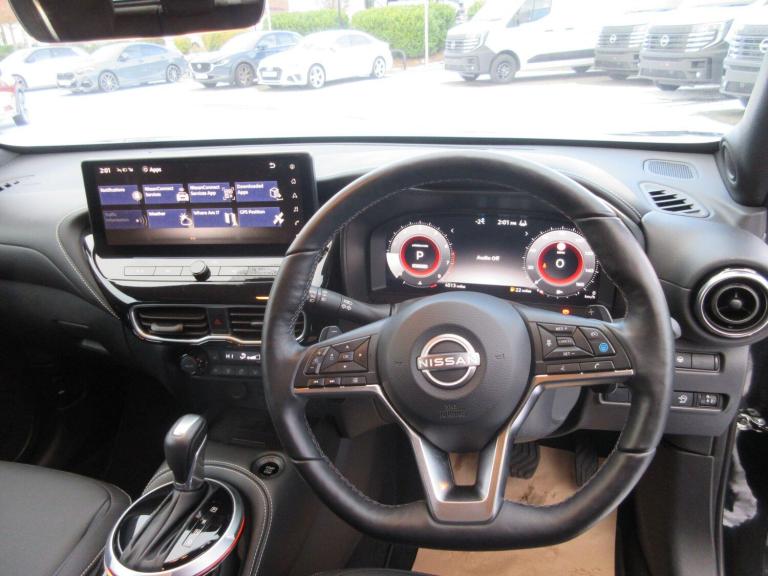 Discover this exceptional 2025 Nissan Juke DIG-T Tekna, boasting an incredibly low mileage of just 3999 miles, making it a standout choice for its age. This single owner vehicle, finished in the desirable Tekna trim, is powered by an efficient 1.0 litre petrol engine and meets Euro 6 emission standards. It comes equipped with a host of modern conveniences, including LED headlights for superior visibility, and a comprehensive Heat Pack featuring heated seats and a heated steering wheel for ultimate comfort in any weather.The Juke DIG-T Tekna offers impressive fuel economy, achieving a highlight of 47 miles per gallon, and also boasts low CO2 emissions, indicating its environmental consideration. For added convenience and safety, it features rear parking sensors to assist with manoeuvring, and an Intelligent Key system with push button start and walk away lock/approach unlock functions for effortless access and security. Stay connected on the go with Bluetooth connectivity, complemented by both USB A and C ports. These features collectively demonstrate how this Nissan Juke offers a superior driving experience compared to other vehicles in its class.