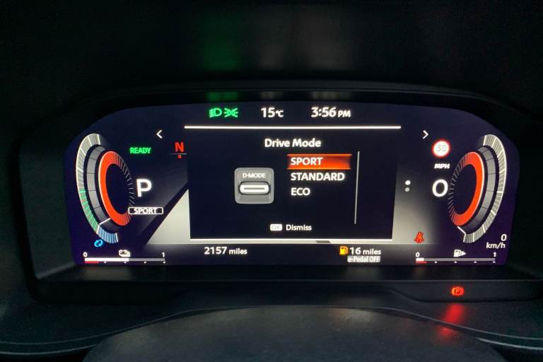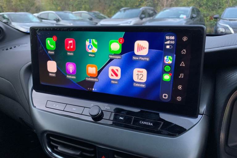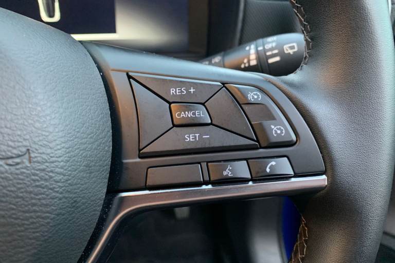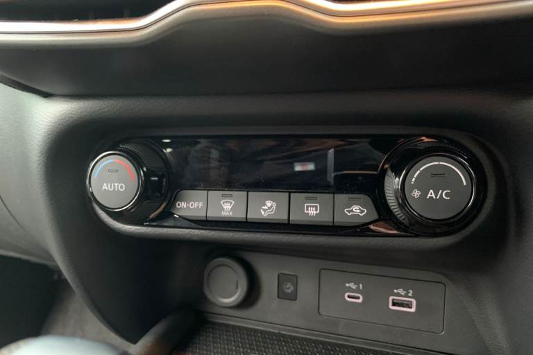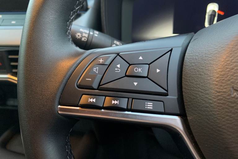 ..12.3'' full colour TFT screen combimeter, Drive modes select (Eco, normal and sport), e-Pedal step, Emergency and breakdown call, EV mode switch, Front parking sensor, Intelligent driver alert system, Intelligent lane intervention, Lane departure warning system, Nissan connect 12.3'' touch screen entertainment system, Nissan connect nav with TomTom traffic, Nissan connect services, Outside temperature sensor, Power Steering, Rear parking sensor, Stop/start button, Traffic sign recognition, Trip computer, Voice recognition, WiFi connectivity, Wireless Apple CarPlay and Google Android auto, Wireless Smartphone charger, 2 X Rear console USB port, 6 speakers, Bluetooth system, USB, Aux-in and 12V socket, DAB Digital radio, Auto dimming frameless rear view mirror, Automatic hazard signal with emergency stop signal, Body colour door handles, Electrically adjustable door mirrors with integrated indicators, Follow me home headlights, Front and rear electric window with one touch driver window, Heated and auto folding door mirrors, High beam assist, LED 3rd brake light, LED daytime running lights, LED headlamps, LED rear fog lamp, LED rear lamps, One touch passenger window, Rain sensor windscreen wipers, Rear privacy glass, Rear side wing doors, Rear wiper, Roof spoiler, Shark fin roof antenna in solid Black, Three blink turn signal, 3 height adjustable rear headrests, 3 seat bench in 2nd row, 60/40 split folding rear seat, Automatic climate control, Card holder on driver sunvisor, Cloth/Synthetic leather with melange fabric inserts, Driver side rear coat hanger, Driver/passenger sunvisors and vanity mirrors, Front and rear cabin lights, Front armrest, Front door pockets with bottle holders, Front head restraints, Front/rear passenger grab handles, Height adjustable driver's seat, Internal chrome door handles, Leather gearshift knob, Luggage board, Luggage space lighting, Monoform sporty seats, Multifunction steering wheel, Rear door bottle holders, Single front passenger seat, Smooth synthetic leather steering wheel, Synthetic leather kneepad, Telescopic steering wheel adjustment, Two cupholders in front centre console, Two rear isofix child seat anchorage points with top tether, Welcome light and console tray ambient lighting, ABS with EBD and brake assist, Active ride control, Active Trace Control, Driver and passenger airbags, Driver and passenger side airbags, Electric handbrake with auto hold function, Electronic Stability Programme (ESP), Front and rear