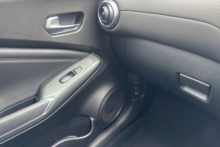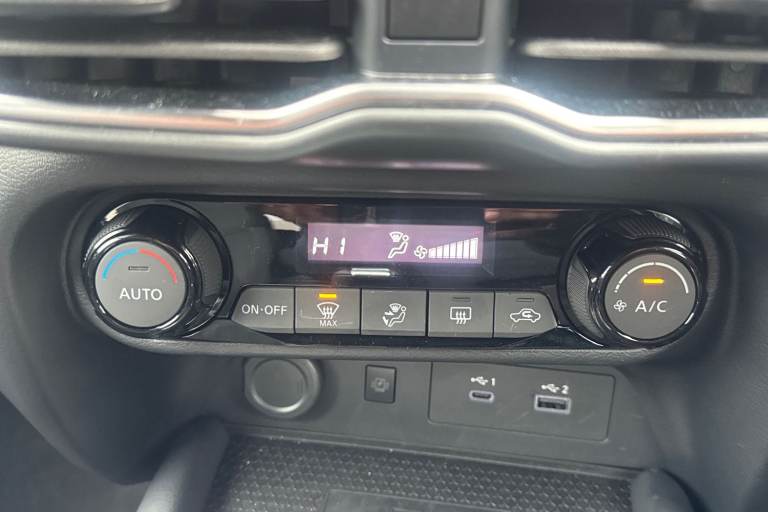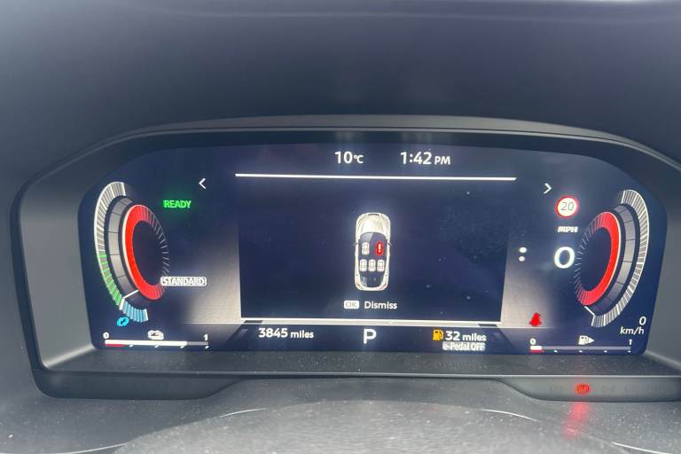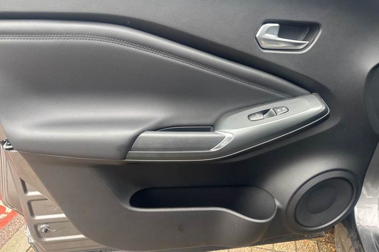 ..12.3'' full colour TFT screen combimeter, Drive modes select (Eco, normal and sport), e-Pedal step, Emergency and breakdown call, EV mode switch, Front parking sensor, Intelligent driver alert system, Intelligent lane intervention, Lane departure warning system, Nissan connect 12.3'' touch screen entertainment system, Nissan connect nav with TomTom traffic, Nissan connect services, Outside temperature sensor, Power Steering, Rear parking sensor, Stop/start button, Traffic sign recognition, Trip computer, Voice recognition, WiFi connectivity, Wireless Apple CarPlay and Google Android auto, Wireless Smartphone charger, 2 X Rear console USB port, 6 speakers, Bluetooth system, USB, Aux-in and 12V socket, DAB Digital radio, Auto dimming frameless rear view mirror, Automatic hazard signal with emergency stop signal, Body colour door handles, Electrically adjustable door mirrors with integrated indicators, Follow me home headlights, Front and rear electric window with one touch driver window, Heated and auto folding door mirrors, High beam assist, LED 3rd brake light, LED daytime running lights, LED headlamps, LED rear fog lamp, LED rear lamps, One touch passenger window, Rain sensor windscreen wipers, Rear privacy glass, Rear side wing doors, Rear wiper, Roof spoiler, Shark fin roof antenna in solid Black, Solid black door mirrors, Three blink turn signal, 3 height adjustable rear headrests, 3 seat bench in 2nd row, 60/40 split folding rear seat, Automatic climate control, Card holder on driver sunvisor, Cloth/Synthetic leather with melange fabric inserts, Driver side rear coat hanger, Driver/passenger sunvisors and vanity mirrors, Front and rear cabin lights, Front armrest, Front door pockets with bottle holders, Front head restraints, Front/rear passenger grab handles, Height adjustable driver's seat, Internal chrome door handles, Luggage board, Luggage space lighting, Monoform sporty seats, Multifunction steering wheel, Rear door bottle holders, Single front passenger seat, Smooth synthetic leather steering wheel, Synthetic leather kneepad, Synthetic leather shift knob, Telescopic steering wheel adjustment, Two cupholders in front centre console, Two rear isofix child seat anchorage points with top tether, Welcome light and console tray ambient lighting, ABS with EBD and brake assist, Active ride control, Active Trace Control, Driver and passenger airbags, Driver and passenger side airbags, Electric handbrake with auto hold function, Electronic Stability