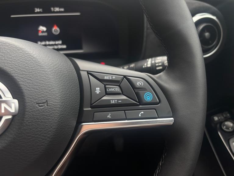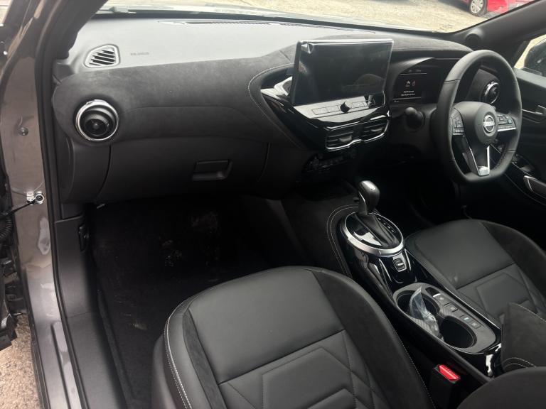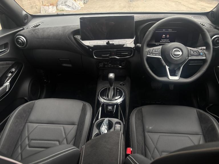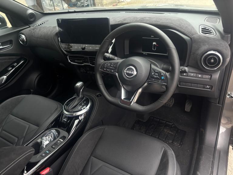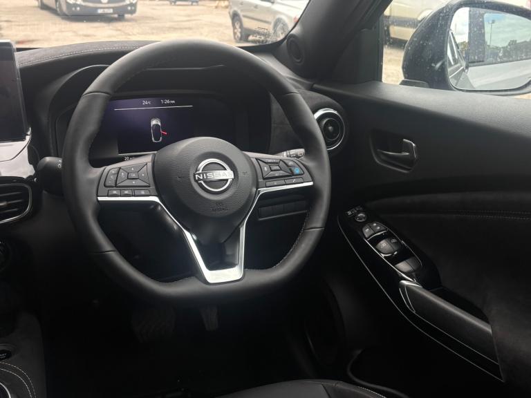 .This stylish crossover is powered by an efficient 1.6L Petrol Hybrid engine, meeting Euro 6 emission standards. Inside, you'll be treated to the immersive Bose Personal Plus Audio System, featuring a premium branded sound system for an enhanced driving experience. The Nissan Juke Tekna+ stands out with its impressive fuel economy, achieving a remarkable 59 miles per gallon, which indicates it is more economical than many similar vehicles. Furthermore, its low CO2 emissions and low insurance group highlight its cost effectiveness and appeal to a wide range of drivers. This combination of efficiency, advanced features, and low running costs makes this Juke a truly compelling choice..12.3'' full colour TFT screen combimeter, Drive modes select (Eco, normal and sport), e-Pedal step, Emergency and breakdown call, EV mode switch, Front parking sensor, Intelligent driver alert system, Intelligent lane intervention, Lane departure warning system, Nissan connect 12.3'' touch screen entertainment system, Nissan connect nav with TomTom traffic, Nissan connect services, Outside temperature sensor, Power Steering, Rear parking sensor, Stop/start button, Traffic sign recognition, Trip computer, Voice recognition, WiFi connectivity, Wireless Apple CarPlay and Google Android auto, Wireless Smartphone charger, 10 Bose speakers 8 speakers and 2 headrest speakers for driver/passenger seats, 2 X Rear console USB port, Bluetooth system, USB, Aux-in and 12V socket, Bose personal plus audio system, DAB Digital radio, Auto dimming frameless rear view mirror, Automatic hazard signal with emergency stop signal, Body colour door handles, Electrically adjustable door mirrors with integrated indicators, Follow me home headlights, Front and rear electric window with one touch driver window, High beam assist, LED 3rd brake light, LED daytime running lights, LED front fog lights, LED headlamps, LED rear fog lamp, LED rear lamps, One touch passenger window, Rear privacy glass, Rear side wing doors, Rear wiper, Roof spoiler, Shark fin roof antenna in solid Black, Solid black door mirrors, Solid black front bumper/rear bumper and side skirts inserts, Three blink turn signal, 3 height adjustable rear headrests, 3 seat bench in 2nd row, 60/40 split folding rear seat, Card holder on driver sunvisor, Door ambient lighting, Driver seat back pocket, Driver side rear coat hanger, Driver/passenger sunvisors and vanity mirrors, Front and rear cabin lights, Front armrest, Front door pockets with