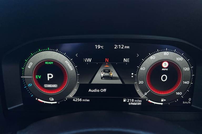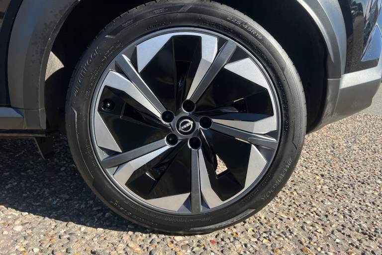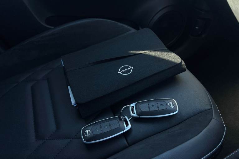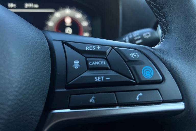 ..12.3'' full colour TFT screen combimeter, Drive modes select (Eco, normal and sport), e-Pedal step, Emergency and breakdown call, EV mode switch, Front parking sensor, Intelligent driver alert system, Intelligent lane intervention, Lane departure warning system, Nissan connect 12.3'' touch screen entertainment system, Nissan connect nav with TomTom traffic, Nissan connect services, Outside temperature sensor, Power Steering, Rear parking sensor, Stop/start button, Traffic sign recognition, Trip computer, Voice recognition, WiFi connectivity, Wireless Apple CarPlay and Google Android auto, Wireless Smartphone charger, 10 Bose speakers 6 speakers and 2 headrest speakers for driver/passenger seats, 2 X Rear console USB port, Bluetooth system, USB, Aux-in and 12V socket, Bose personal sound stage control, DAB Digital radio, Auto dimming frameless rear view mirror, Automatic hazard signal with emergency stop signal, Body colour door handles, Electrically adjustable door mirrors with integrated indicators, Follow me home headlights, Front and rear electric window with one touch driver window, Heated and auto folding door mirrors, High beam assist, LED 3rd brake light, LED daytime running lights, LED front fog lights, LED headlamps, LED rear fog lamp, LED rear lamps, One touch passenger window, Rain sensor windscreen wipers, Rear privacy glass, Rear side wing doors, Rear wiper, Roof spoiler, Shark fin roof antenna in solid Black, Three blink turn signal, 3 height adjustable rear headrests, 3 seat bench in 2nd row, 60/40 split folding rear seat, Automatic climate control, Card holder on driver sunvisor, Door ambient lighting, Driver seat back pocket, Driver side rear coat hanger, Driver/passenger sunvisors and vanity mirrors, Front and rear cabin lights, Front armrest, Front door pockets with bottle holders, Front head restraints, Front/rear passenger grab handles, Gear console ambient circle lighting, Height adjustable driver's seat, Internal chrome door handles, Leather gearshift knob, Luggage board, Luggage space lighting, Monoform sporty seats, Multifunction steering wheel, Passenger seat back pocket, Rear door bottle holders, Single front passenger seat, Smooth synthetic leather steering wheel, Synthetic leather kneepad, Telescopic steering wheel adjustment, Two cupholders in front centre console, Two rear isofix child seat anchorage points with top tether, Welcome light and console tray ambient lighting, Heat pack with height adjustable passenger seats -