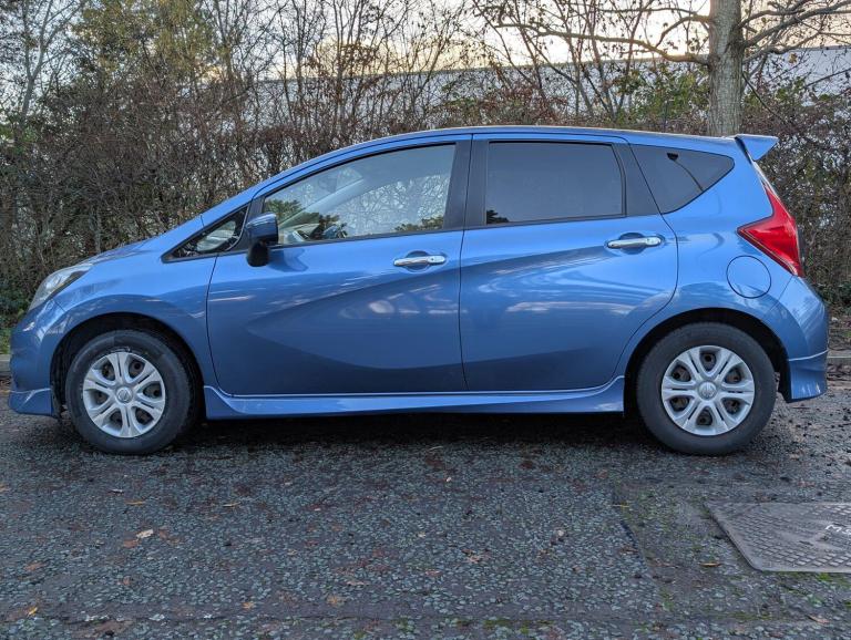 Nissan Note Automatic finished in the standout Sky Blue Metallic, a limited-edition Medalist model representing the highest specification in the Nissan Note range. This superb example has covered just 51k miles and presents in excellent condition throughout, combining refined styling, generous space and impressive efficiency. ULEZ Complaint.The Medalist specification offers an exceptional level of equipment, including reverse camera and parking sensors, keyless entry and push-button start, touchscreen infotainment with Bluetooth and smartphone connectivity, auto headlights, lane assist, climate control, power-folding mirrors, and electric windows front and rear. Finished with a premium part-leather interior and factory styling enhancements, it has a smart, contemporary appearance. Fresh Japanese import mileage is warranted and comes with long MOT until Sept 2026 with no advisories. Includes a free 3-month warranty, and part exchange is welcome. Contact us today to arrange your viewing and test drive. Walkaround video available on request.
