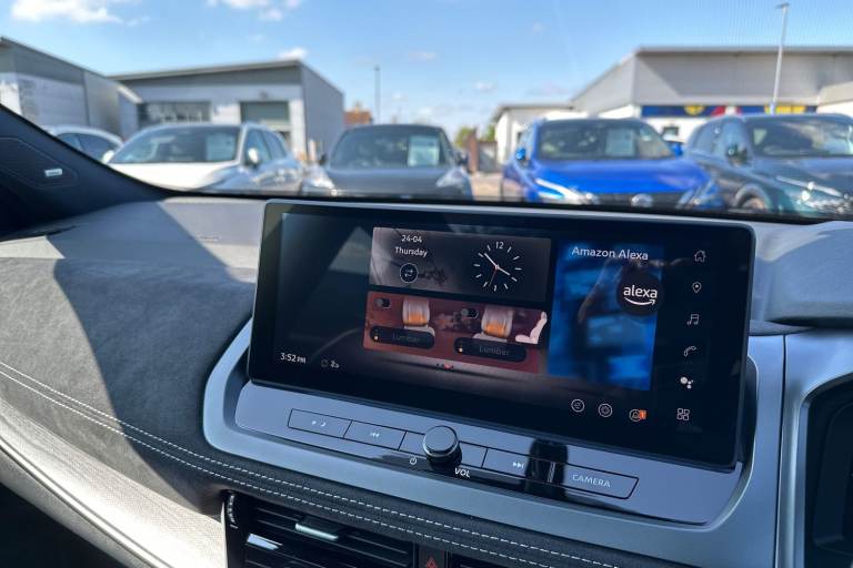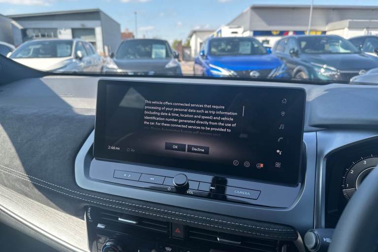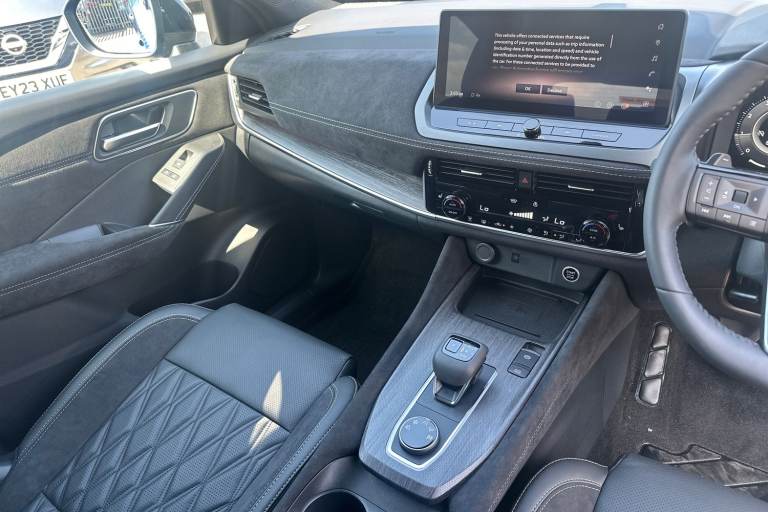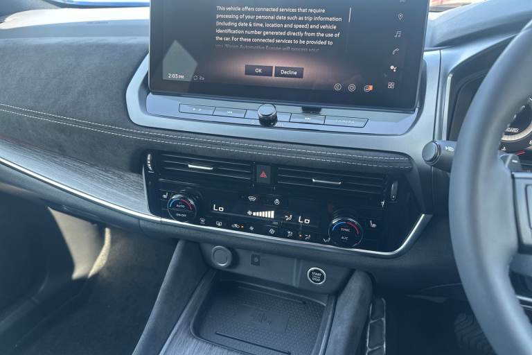 ..2 front USB-C ports, 2 rear USB-C ports, 360 degree Intelligent around view monitor with moving object detection, Advanced windscreen head up display, Blind spot intervention, Blind spot warning, Drive assist custom mode, Drive modes (sport, normal, eco), Driver drowsiness and attention warning, Electric speed sensitive power steering, Emergency and breakdown call, Emergency lane keep assist, Emergency Stop Signal (ESS), Engine start/stop button, Event data recorder, Front and rear parking sensors, Full Digital 12.3'' TFT Digital Combimeter, Google virtual personal assistance, Hands free power tailgate, Idle stop/start system, In-car WIFI hotspot, Intelligent Cruise control (ICC), Intelligent forward collision warning, Intelligent speed assist, Lane departure warning system, Nissan connect 12.3 inch touchscreen infotainment system, Nissan connect navigation with google maps, Nissan connect services 2.0 (Google Automotive System), Outside temperature sensor, Rear cross traffic alert, Reversing detection, Traffic jam pilot, Wireless Apple CarPlay/Android Auto, Wireless charging pad, Limited slip differential, Multi link suspension, 10 Bose speakers - 2 tweeters, 6 high and medium frequency door speakers and 2 in subwoofer, AM/FM audio system with DAB, Bluetooth audio streaming, Bose acoustimass bass box, Auto dimming frameless rear view mirror, Auto rear wiper when reversing, Body colour mirror caps, Body coloured bumpers, Body coloured door handles, Bodyside mouldings, Chrome side window finisher, Electric auto folding door mirrors, Electrically adjustable and heated door mirrors with LED turn indicator, Follow me home headlights, Glossy black bumper inserts and fenders, High beam assist, Intelligent auto headlights, LED 3rd brake light, LED daytime running lights, LED headlights with adaptive driving beam, LED rear lights, LED sequential turn lights, One touch front and rear electric windows with remote opening and closing, One touch passenger window, Rear privacy glass, Rear roof spoiler, Rear side wing doors, Rear styling plate, Reverse tilting door mirrors, Shark fin antenna, Silver roof rails, Splash free rain sensing wipers, Super RED rear LED lights, Super UV and infrared cut glass, Thermaclear heated windscreen, 3 bench rear seats in 2nd row, 3 rear headrests, 60/40 split folding rear seat bench, Chrome interior door handles, Dark headlining, Driver seat back pocket, Dual zone automatic climate control with pollen filter, Fixed Glass roof with