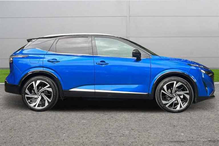 The Nissan Qashqai Tekna+ is a highly rated family SUV with a balance between luxury and practicality. At Brayleys Stockport, we are delighted to offer this model finished in stunning Magnetic Blue metallic paint Specification - The top of the range Tekna+ specification includes many great features such as; Panoramic glass sunroof, Nissan Connect Satellite Navigation system, 360 Degree parking cameras, Front and rear parking sensors, Pro Pilot, 3 x Drive modes (Normal, Sport, Eco), Advanced windscreen head up display, Quilted premium leather upholstery, Apple CarPlay, Android Auto, Wireless Apple CarPlay, Bluetooth, Wireless charging pad, Virtual assistant, Heated front seats with massage function, Google maps services, Dual zone automatic climate control, Ambient lighting, Intelligent cruise control, 20"" Alloy wheels, Automatic lights, Rain sensing windscreen wipers, Privacy glass and so much more! Safety - There is a range of driver assists to keep you safer on the roads; Intelligent driver alert system, Lane keep assist, Intelligent front emergency braking with pedestrian, cyclist recognition and junction assist, Intelligent blind spot intervention, Hill start assist and more. Get in touch to speak with our friendly and knowledgeable team to book a test drive, organise a live video viewing or personalised finance quote. Welcome to Brayleys Stockport where all of our APPROVED USED vehicles come with a 100 POINT INSPECTION carried out by one of our EXPERTLY TRAINED NISSAN TECHNICIANS – Plus a MINIMUM OF 12 MONTHS COMPREHENSIVE WARRANTY AND 1 YEARS GOLD RAC COVER FOR YOUR PEACE OF MIND. There is also 2 YEARS SERVICING and 3 YEARS GOLD RAC cover included for FREE when financed through Nissan PCP Finance. Nissan vehicles only (T&C’s Apply) Brayleys – Together we drive