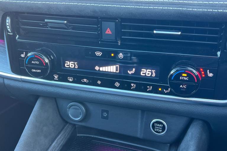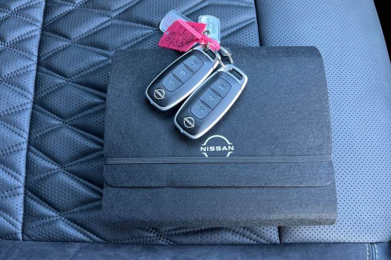 ..2 front USB-C ports, 2 rear USB-C ports, 360 degree Intelligent around view monitor with moving object detection, Advanced windscreen head up display, Blind spot intervention, Blind spot warning, Drive assist, Drive assist custom mode, Drive modes (sport, normal, eco), Driver drowsiness and attention warning, Electric speed sensitive power steering, Emergency and breakdown call, Emergency lane keep assist, Emergency Stop Signal (ESS), Engine start/stop button, Event data recorder, Front and rear parking sensors, Full Digital 12.3'' TFT Digital Combimeter, Google virtual personal assistance, Hands free power tailgate, Idle stop/start system, In-car WIFI hotspot, Intelligent Cruise control (ICC), Intelligent forward collision warning, Intelligent speed assist, Lane departure warning system, Nissan connect 12.3 inch touchscreen infotainment system, Nissan connect navigation with google maps, Nissan connect services 2.0 (Google Automotive System), Outside temperature sensor, Rear cross traffic alert, Reversing detection, Wireless Apple CarPlay/Android Auto, Wireless charging pad, Limited slip differential, Multi link suspension, 10 Bose speakers - 2 tweeters, 6 high and medium frequency door speakers and 2 in subwoofer, AM/FM audio system with DAB, Bluetooth audio streaming, Bose acoustimass bass box, Auto dimming frameless rear view mirror, Auto rear wiper when reversing, Body colour mirror caps, Body coloured bumpers, Body coloured door handles, Bodyside mouldings, Chrome side window finisher, Electric auto folding door mirrors, Electrically adjustable and heated door mirrors with LED turn indicator, Follow me home headlights, Glossy black bumper inserts and fenders, High beam assist, Intelligent auto headlights, LED 3rd brake light, LED daytime running lights, LED headlights with adaptive driving beam, LED rear lights, LED sequential turn lights, One touch front and rear electric windows with remote opening and closing, One touch passenger window, Rear privacy glass, Rear roof spoiler, Rear side wing doors, Rear styling plate, Reverse tilting door mirrors, Shark fin antenna, Silver roof rails, Splash free rain sensing wipers, Super RED rear LED lights, Super UV and infrared cut glass, Thermaclear heated windscreen, 3 bench rear seats in 2nd row, 3 rear headrests, 60/40 split folding rear seat bench, Chrome interior door handles, Dark headlining, Driver seat back pocket, Dual zone automatic climate control with pollen filter, Fixed Glass roof with