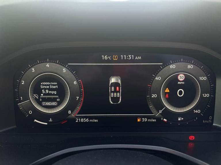 ..2 front USB-C ports, 2 rear USB-C ports, 360 degree Intelligent around view monitor with moving object detection, Blind spot intervention, Blind spot warning, Drive assist, Drive assist custom mode, Drive modes (sport, normal, eco), Driver drowsiness and attention warning, Electric speed sensitive power steering, Emergency and breakdown call, Emergency lane keep assist, Emergency Stop Signal (ESS), Engine start/stop button, Event data recorder, Front and rear parking sensors, Full Digital 12.3'' TFT Digital Combimeter, Google virtual personal assistance, Idle stop/start system, In-car WIFI hotspot, Intelligent Cruise control (ICC), Intelligent forward collision warning, Intelligent speed assist, Lane departure warning system, Nissan connect 12.3 inch touchscreen infotainment system, Nissan connect navigation with google maps, Nissan connect services 2.0 (Google Automotive System), Outside temperature sensor, Rear cross traffic alert, Reversing detection, Wireless Apple CarPlay/Android Auto, Wireless charging pad, Limited slip differential, 6 speakers, AM/FM audio system with DAB, Bluetooth audio streaming, Auto rear wiper when reversing, Body colour mirror caps, Body coloured door handles, Bodyside mouldings, Chrome side window finisher, Electric auto folding door mirrors, Electrically adjustable and heated door mirrors with LED turn indicator, Follow me home headlights, High beam assist, Intelligent auto headlights, LED 3rd brake light, LED daytime running lights, LED Headlights, LED rear lights, One touch front and rear electric windows with remote opening and closing, One touch passenger window, Partially body coloured bumpers, Rear privacy glass, Rear roof spoiler, Rear side wing doors, Rear styling plate, Shark fin antenna, Splash free rain sensing wipers, Super UV and infrared cut glass, Three blink turn signal, 3 bench rear seats in 2nd row, 3 rear headrests, 60/40 split folding rear seat bench, Chrome interior door handles, Cloth upholstery, Dark headlining, Driver seat back pocket, Dual zone automatic climate control with pollen filter, Front door with bottle holders, Height adjustable front headrests, Leather shift knob, Luggage board system, Luggage space lighting, Multifunction steering wheel, Passenger seat back pocket, Rear door bottle holders, RGB ambient light (Full area coverage), Single front passenger seat, Smooth leather steering wheel, Tilt/telescopic adjustable steering wheel, Two rear isofix child seat anchorage points with top
