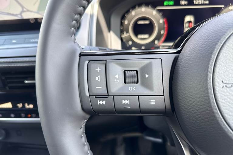 ..2 front USB-C ports, 2 rear USB-C ports, 360 degree Intelligent around view monitor with moving object detection, Blind spot intervention, Blind spot warning, Drive assist, Drive assist custom mode, Drive modes (sport, normal, eco), Driver drowsiness and attention warning, Electric speed sensitive power steering, Emergency and breakdown call, Emergency lane keep assist, Emergency Stop Signal (ESS), Engine start/stop button, Event data recorder, Front and rear parking sensors, Full Digital 12.3'' TFT Digital Combimeter, Google virtual personal assistance, Idle stop/start system, In-car WIFI hotspot, Intelligent Cruise control (ICC), Intelligent forward collision warning, Intelligent speed assist, Lane departure warning system, Nissan connect 12.3 inch touchscreen infotainment system, Nissan connect navigation with google maps, Nissan connect services 2.0 (Google Automotive System), Outside temperature sensor, Rear cross traffic alert, Reversing detection, Wireless Apple CarPlay/Android Auto, Wireless charging pad, Limited slip differential, 6 speakers, AM/FM audio system with DAB, Bluetooth audio streaming, Auto rear wiper when reversing, Body colour mirror caps, Body coloured door handles, Bodyside mouldings, Chrome side window finisher, Electric auto folding door mirrors, Electrically adjustable and heated door mirrors with LED turn indicator, Follow me home headlights, High beam assist, Intelligent auto headlights, LED 3rd brake light, LED daytime running lights, LED Headlights, LED rear lights, One touch front and rear electric windows with remote opening and closing, One touch passenger window, Partially body coloured bumpers, Rear privacy glass, Rear roof spoiler, Rear side wing doors, Rear styling plate, Shark fin antenna, Splash free rain sensing wipers, Super UV and infrared cut glass, Three blink turn signal, 3 bench rear seats in 2nd row, 3 rear headrests, 60/40 split folding rear seat bench, Chrome interior door handles, Cloth upholstery, Dark headlining, Driver seat back pocket, Dual zone automatic climate control with pollen filter, Front door with bottle holders, Height adjustable front headrests, Leather shift knob, Luggage board system, Luggage space lighting, Multifunction steering wheel, Passenger seat back pocket, Rear door bottle holders, RGB ambient light (Full area coverage), Single front passenger seat, Smooth leather steering wheel, Tilt/telescopic adjustable steering wheel, Two rear isofix child seat anchorage points with top