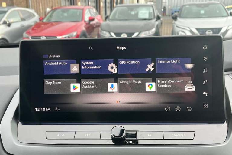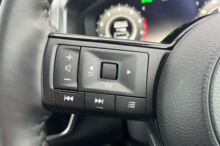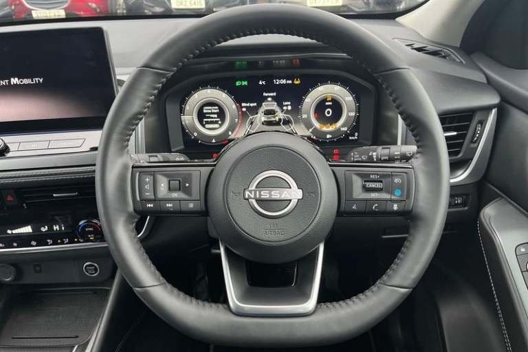 2 front USB-C ports, 2 rear USB-C ports, 360 degree Intelligent around view monitor with moving object detection, Blind spot warning, Drive assist, Drive assist custom mode, Drive modes (sport, normal, eco), Driver drowsiness and attention warning, Electric speed sensitive power steering, Emergency and breakdown call, Emergency lane keep assist, Emergency Stop Signal (ESS), Engine start/stop button, Event data recorder, Front and rear parking sensors, Full Digital 12.3 TFT Digital Combimeter, Google virtual personal assistance, Idle stop/start system, In-car WIFI hotspot, Intelligent Cruise control (ICC), Intelligent driver alert system, Intelligent forward collision warning, Intelligent lane intervention, Intelligent speed assist, Lane departure warning system, Maximum speed limiter, Nissan connect 12.3 inch touchscreen infotainment system, Nissan connect navigation with google maps, Nissan connect services 2.0 (Google Automotive System), Outside temperature sensor, Rear cross traffic alert, Remote control services - door locks, lights, horn and car locator, Reversing detection, Traffic sign recognition with legal speed adjustment, Trip computer, Wireless Apple CarPlay/Android Auto, Wireless charging pad, Auto rear wiper when reversing, Body coloured door handles, Bodyside mouldings, Chrome side window finisher, Electric auto folding door mirrors, Electrically adjustable and heated door mirrors with LED turn indicator, Follow me home headlights, Gloss black mirror caps,