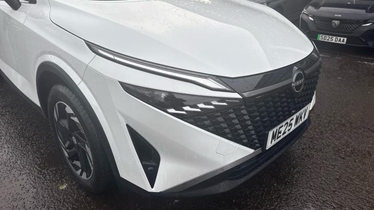 The 2025 Nissan Qashqai Hatchback 1.3 DiG-T Mild Hybrid N-Connecta 5dr is a refined and versatile family SUV designed to suit modern driving needs. Powered by a responsive 1.3-litre turbocharged petrol engine with mild-hybrid technology, it delivers smooth performance while improving fuel efficiency and reducing emissions, making it well suited to both urban and motorway driving.The N-Connecta trim offers a strong balance of style, comfort and technology. Inside, the cabin feels modern and well finished, featuring a large touchscreen infotainment system with smartphone connectivity, digital driver displays and intuitive controls. Comfortable seating, dual-zone climate control and a well-designed driving position make longer journeys relaxed and enjoyable.Practicality is a key strength of the Qashqai. The spacious interior provides ample room for passengers, while the generous boot offers flexibility for everyday use, shopping trips or family holidays. Folding rear seats add further versatility when carrying larger loads.On the road, the Qashqai delivers a confident and composed drive, supported by a wide range of safety and driver-assistance systems including lane keep assist, intelligent emergency braking and cruise control. Stylish, efficient and easy to live with, the 2025 Nissan Qashqai N-Connecta is a smart all-round choice..Climate Control, Metallic Paint, Cruise Control, Alloy Wheels, DAB Radio, Bluetooth, Parking Sensors, Low Mileage, Full Service History, USB& Apple-Android Play, Rear privacy glass, One touch passenger window, Splash free rain sensing wipers, Auto rear wiper when reversing, One touch front and rear electric windows with remote opening and closing, Super UV and infrared cut glass, Rain sensing wipers, Hill start assist, Electric handbrake with auto hold function, Vehicle dynamic control, intelligent front emergency braking, ABS with EBD and brake assist, Intelligent rear automatic braking, Intelligent blind spot intervention, Wireless Apple CarPlay/Android Auto, 2 front USB-C ports, 2 rear USB-C ports, In-car WIFI hotspot, Electric speed sensitive power steering, Lane departure warning system, Front and rear parking sensors, Intelligent Cruise control (ICC), Rear cross traffic alert, Intelligent speed assist, Blind spot warning