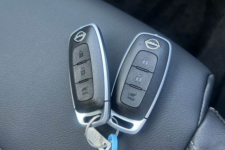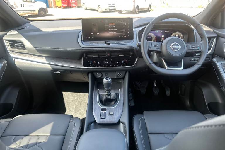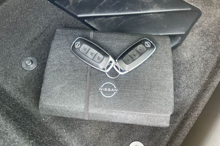 ..2 front USB-C ports, 2 rear USB-C ports, 360 degree Intelligent around view monitor with moving object detection, Advanced windscreen head up display, Blind spot intervention, Blind spot warning, Drive assist, Drive assist custom mode, Drive modes (sport, normal, eco), Driver drowsiness and attention warning, Electric speed sensitive power steering, Emergency and breakdown call, Emergency lane keep assist, Emergency Stop Signal (ESS), Engine start/stop button, Event data recorder, Front and rear parking sensors, Full Digital 12.3'' TFT Digital Combimeter, Google virtual personal assistance, Hands free power tailgate, Idle stop/start system, In-car WIFI hotspot, Intelligent Cruise control (ICC), Intelligent forward collision warning, Intelligent speed assist, Lane departure warning system, Nissan connect 12.3 inch touchscreen infotainment system, Nissan connect navigation with google maps, Nissan connect services 2.0 (Google Automotive System), Outside temperature sensor, Rear cross traffic alert, Reversing detection, Wireless Apple CarPlay/Android Auto, Wireless charging pad, Limited slip differential, 6 speakers, AM/FM audio system with DAB, Bluetooth audio streaming, Auto dimming frameless rear view mirror, Auto rear wiper when reversing, Body colour mirror caps, Body coloured door handles, Bodyside mouldings, Chrome side window finisher, Electric auto folding door mirrors, Electrically adjustable and heated door mirrors with LED turn indicator, Follow me home headlights, Glossy black bumper inserts and fenders, High beam assist, Intelligent auto headlights, LED 3rd brake light, LED daytime running lights, LED headlights with adaptive driving beam, LED rear lights, LED sequential turn lights, One touch front and rear electric windows with remote opening and closing, One touch passenger window, Partially body coloured bumpers, Rear privacy glass, Rear roof spoiler, Rear side wing doors, Rear styling plate, Reverse tilting door mirrors, Shark fin antenna, Silver roof rails, Splash free rain sensing wipers, Super RED rear LED lights, Super UV and infrared cut glass, Thermaclear heated windscreen, 3 bench rear seats in 2nd row, 3 rear headrests, 60/40 split folding rear seat bench, Chrome interior door handles, Dark headlining, Driver seat back pocket, Dual zone automatic climate control with pollen filter, Fixed Glass roof with electric sunshade, Front door with bottle holders, Heated front seats, Heated steering wheel, Height adjustable front headrests,