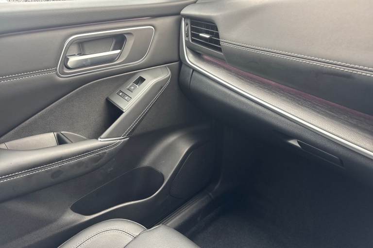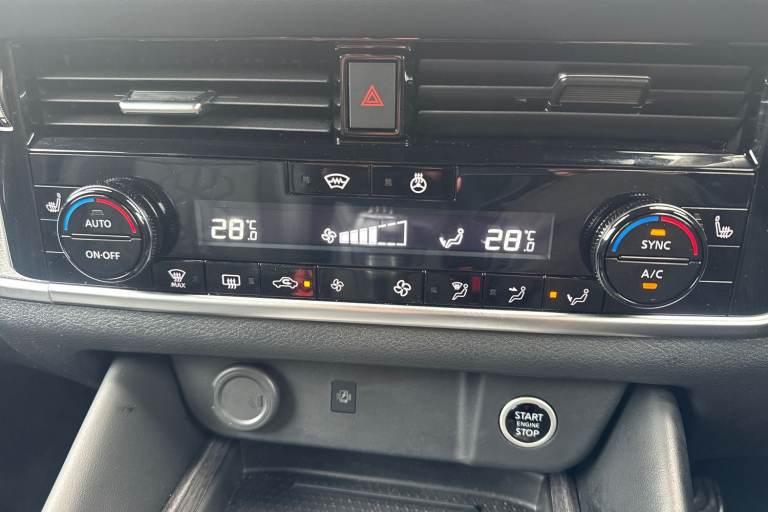 ..2 front USB-C ports, 2 rear USB-C ports, 360 degree Intelligent around view monitor with moving object detection, Advanced windscreen head up display, Blind spot intervention, Blind spot warning, Drive assist, Drive assist custom mode, Drive modes (sport, normal, eco), Driver drowsiness and attention warning, Electric speed sensitive power steering, Emergency and breakdown call, Emergency lane keep assist, Emergency Stop Signal (ESS), Engine start/stop button, Event data recorder, Front and rear parking sensors, Full Digital 12.3'' TFT Digital Combimeter, Google virtual personal assistance, Hands free power tailgate, Idle stop/start system, In-car WIFI hotspot, Intelligent Cruise control (ICC), Intelligent forward collision warning, Intelligent speed assist, Lane departure warning system, Nissan connect 12.3 inch touchscreen infotainment system, Nissan connect navigation with google maps, Nissan connect services 2.0 (Google Automotive System), Outside temperature sensor, Rear cross traffic alert, Reversing detection, Wireless Apple CarPlay/Android Auto, Wireless charging pad, Limited slip differential, 6 speakers, AM/FM audio system with DAB, Bluetooth audio streaming, Auto dimming frameless rear view mirror, Auto rear wiper when reversing, Body colour mirror caps, Body coloured door handles, Bodyside mouldings, Chrome side window finisher, Electric auto folding door mirrors, Electrically adjustable and heated door mirrors with LED turn indicator, Follow me home headlights, Glossy black bumper inserts and fenders, High beam assist, Intelligent auto headlights, LED 3rd brake light, LED daytime running lights, LED headlights with adaptive driving beam, LED rear lights, LED sequential turn lights, One touch front and rear electric windows with remote opening and closing, One touch passenger window, Partially body coloured bumpers, Rear privacy glass, Rear roof spoiler, Rear side wing doors, Rear styling plate, Reverse tilting door mirrors, Shark fin antenna, Silver roof rails, Splash free rain sensing wipers, Super RED rear LED lights, Super UV and infrared cut glass, Thermaclear heated windscreen, 3 bench rear seats in 2nd row, 3 rear headrests, 60/40 split folding rear seat bench, Chrome interior door handles, Dark headlining, Driver seat back pocket, Dual zone automatic climate control with pollen filter, Fixed Glass roof with electric sunshade, Front door with bottle holders, Heated front seats, Heated steering wheel, Height adjustable front headrests,