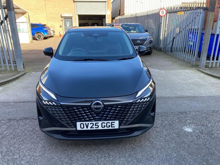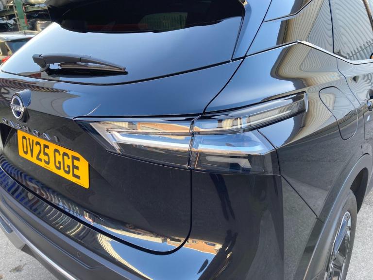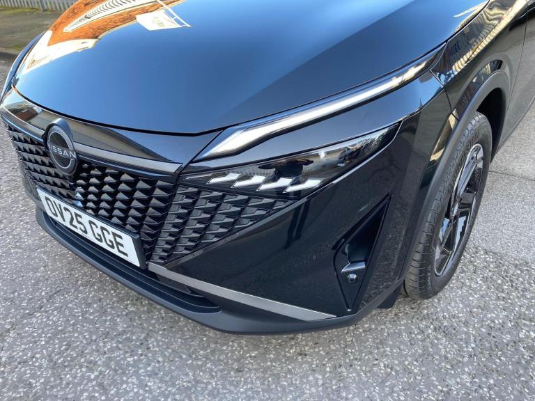 OV25GGE. WAS £22,190 - NOW £22,090 - TOTAL SAVING £100.This 2025 Nissan Qashqai DIG-T N-Connecta is a rare find, boasting a single owner from new and a full Nissan manufacturer approved service history. With only 7861 miles on the clock, this Euro 6 compliant 1.3L Petrol Hybrid is exceptionally low mileage for its age, and its MOT is valid until March 2028. The last service was completed on 27 February 2026 at 7862 miles, ensuring peace of mind for its next owner.The N-Connecta trim level comes equipped with a desirable Glass Roof Pack, featuring a fixed panoramic sunroof that floods the cabin with light. You'll also benefit from LED headlights for enhanced visibility, rear parking sensors to aid manoeuvring, and seamless wireless Apple CarPlay integration for your smartphone. Inside, the automatic dual zone climate control with a pollen filter ensures a comfortable environment for all occupants, while the Qashqai is renowned for its generous boot space, making it a practical choice for families and everyday life.
