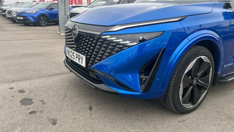 Nissan Qashqai 1.5 E&8209,Power N&8209,Design [Comfort Pack] 5dr Auto (2025)The 2025 Qashqai with the e-Power system delivers a compelling mix of electric-drive smoothness, everyday convenience and high-spec kit, all wrapped in the stylish N-Design [Comfort Pack] trim.Key Features & Equipment:Premium 20&8243, diamond-cut alloy wheels, gloss accents and a raised sporty stance. Lookers Motor Group+2Howards Motor Group+2LED headlights with signature DRLs, contrasting roof options and body-coloured detailing for a standout look.Inside: high-quality finishes, synthetic-leather upholstery, ambient lighting, keyless entry & start, 60:40 split-fold rear seats and generous boot space of 479 litres with seats up. Auto Express+1Infotainment & connectivity: large touchscreen system with wireless Apple CarPlay™, Android Auto™, DAB radio, multiple USB ports, the digital driver display and 360° around-view camera add convenience.Safety & driver assistance: full suite of Nissan Intelligent Mobility technologies including Blind-Spot Intervention, Rear Cross Traffic Alert, Lane Keep Assist, Traffic Sign Recognition and front & rear parking sensors.Performance & Efficiency:Powered by the 1.5-litre petrol engine combined with the e-Power electric drive system producing around 190 bhp and delivering 0-62 mph in about 7.9 seconds, top speed 105 mph. Lookers Motor Group+1WLTP combined fuel economy of approx 54 mpg, with CO&8322, emissions around 118 g/km, offering strong efficiency for a crossover of this size. Auto Express+1Practicality & Dimensions:Length 4,425 mm, width 1,835 mm, height 1,625 mm. Boot capacity 479 litres (seats up) and expands with the rear seats folded. Auto Express+1Stylish, efficient and fully-loaded — the 2025 Qashqai 1.5 E-Power N-Design [Comfort Pack] is an excellent choice for modern crossover buyers seeking tech, comfort and hybrid-drive refinement..Air Conditioning, Satellite Navigation, Alloy Wheels, DAB Radio, Bluetooth, Stop Start& USB, Rear privacy glass, One touch passenger window, Splash free rain sensing wipers, Auto rear wiper when reversing, One touch front and rear electric windows with remote opening and closing, Super UV and infrared cut glass, Rain sensing wipers, Hill start assist, Electric handbrake with auto hold function, Vehicle dynamic control, intelligent front emergency braking, ABS with EBD and brake assist, Intelligent rear automatic braking, Intelligent blind spot intervention, Multi link suspension, Wireless Apple CarPlay/Android Auto, 2 front USB-C ports, 2 rear USB-C ports, In-car WIFI hotspot, Electric speed sensitive power steering, Lane departure warning system, Front and rear parking sensors, Intelligent Cruise control (ICC), Rear cross traffic alert, Intelligent speed assist, Blind spot warning, Traffic jam pilot, Intelligent forward collision warning, Drive modes (sport