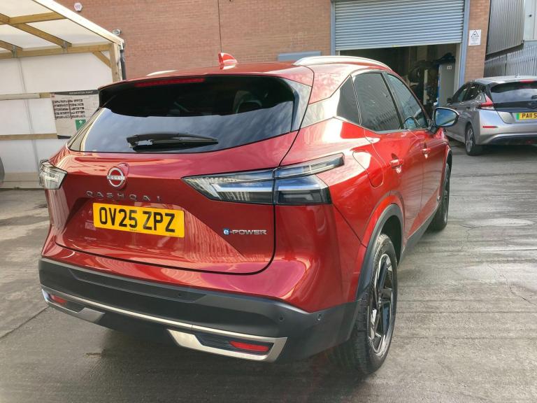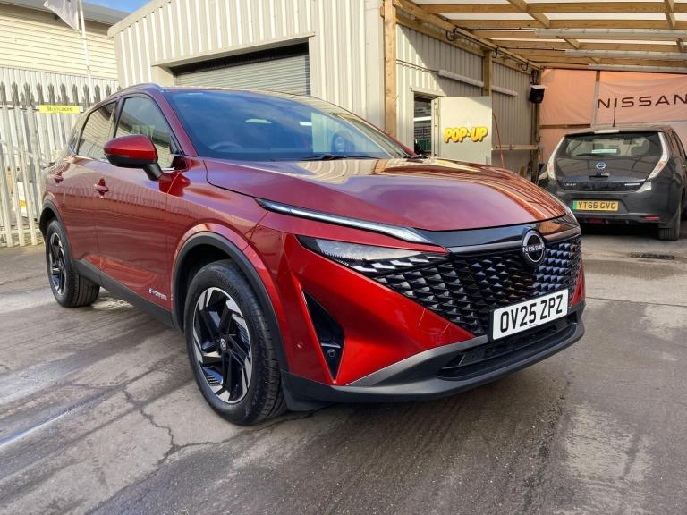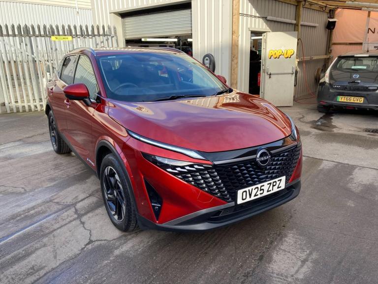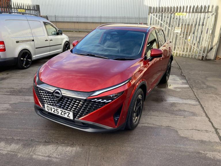 OV25ZPZ. WAS £26,890 - NOW £26,790 - TOTAL SAVING £100.This 2025 Nissan Qashqai h e-POWER N-Connecta boasts an exceptional provenance, having covered a mere 4396 miles and benefiting from a full service history, with its last service completed on 27 February 2026 at 4392 miles. As a Nissan manufacturer approved vehicle, it comes with the assurance of quality and care. This one owner vehicle is equipped with a 1.5L petrol hybrid engine, meeting Euro 6 emission standards, and its MOT is valid until April 2028. Notable features include Bluetooth with Audio Streaming, a 3D Intelligent Around View Monitor with a 360 colour camera and moving object detection for enhanced parking assistance, Intelligent Cruise Control with adaptive capabilities, and Intelligent Key with keyless entry. You can also enjoy seamless connectivity with Wireless Android Auto.The Qashqai N-Connecta stands out with its impressive fuel economy, achieving a highlight of 54 mpg, and its low CO2 emissions, making it a more environmentally conscious choice compared to similar vehicles. Its acceleration is also noteworthy, reaching 0-62mph in just 7.9 seconds, demonstrating a responsive driving experience. Furthermore, this model offers a large boot space, providing ample room for luggage or shopping, further enhancing its practicality for everyday use and longer journeys.