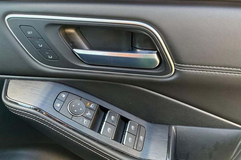 Driver and passenger airbags, Engine immobiliser, Leather steering wheel, Roof rails, Trip computer, Height adjustable front seatbelts, Height adjustable driver's seat, Passenger seat back pocket, Rear roof spoiler, Height adjustable front headrests, Driver seat back pocket, Bodyside mouldings, Front cupholders, Electric sunroof/sunshade, Push button starter, Chrome interior door handles, Heated steering wheel, 50/50 split/folding 3rd row of seats, 3 rear headrests, Electrically adjustable and heated door mirrors, Rear privacy glass, Rear view camera, Tyre pressure monitoring system, Rear armrest with 2 cupholders, Tilt/telescopic adjustable steering wheel, Thatcham Category 1 alarm, Electronic parking brake, Hill start assist, Front seatbelt pretensioners + load limiters, Height adjustable passenger seat, Child locks on rear doors, Tyre puncture repair kit, Electric speed sensitive power steering, Follow me home headlights, Steering column mounted gear shift paddles, Bose premium sound system with 10 speakers, LED daytime running lights, Front and rear parking sensors, Front and rear heated seats, Auto hold function, High beam assist, LED rear lights, Body colour mirror caps, Bluetooth audio streaming, Intelligent Cruise control (ICC), Multifunction steering wheel, Dark headlining, Rear cross traffic alert, LED front fog lights, Moving object detection, 2 seat bench in 3rd row, Hands free power tailgate, Body coloured door handles, Shark fin antenna, Blind spot warning, Intelligent