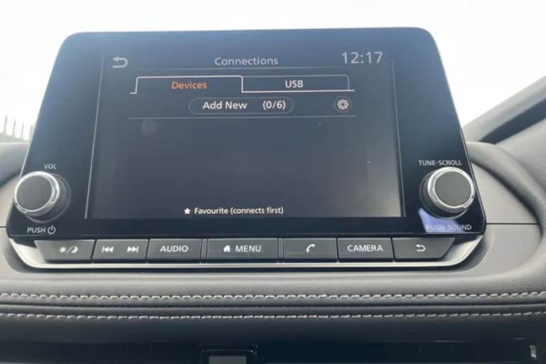 ..Android auto/Apple CarPlay (Wired), Blind spot warning, Drive assist custom mode, Drive modes (sport, normal, eco), Driver drowsiness and attention warning, Electric speed sensitive power steering, Emergency and breakdown call, Event data recorder, Front and rear parking sensors, Full Digital 12.3'' TFT Digital Combimeter, Idle stop/start system, Intelligent driver alert system, Intelligent forward collision warning, Intelligent lane departure warning, Intelligent lane intervention, Intelligent lane keep assist, Maximum speed limiter, Moving object detection, Nissan connect 8'' touchscreen infotainment system, Push button starter, Rear cross traffic alert, Rear view camera, Reversing detection, Traffic sign recognition with legal speed adjustment, Trip computer, Wireless charging pad, 6 speakers, AM/FM audio system with DAB, Bluetooth audio streaming, Front USB connections (Type-A and Type-C), Rear USB charging only ports 2 Type-C, Auto dimming rear view mirror, Auto rear wiper when reversing, Body colour mirror caps, Body coloured door handles, Bodyside mouldings, Chrome side window finisher, Electric auto folding door mirrors, Electrically adjustable and heated door mirrors, Follow me home headlights, High beam assist, Intelligent auto headlights, LED 3rd brake light, LED daytime running lights, LED Headlights, LED rear lights, One touch front and rear electric windows with remote opening and closing, Partially body coloured bumpers, Rain sensing wipers, Rear reversing light (bulb lighting), Rear roof spoiler, Rear side wing doors, Rear styling plate, Shark fin antenna, Splash free wipers, Three blink turn signal, 12v power socket in dashboard and luggage, 2 headrests in 3rd row, 2 seat bench in 3rd row, 2x 3-point seat belts in 3rd row, 3 bench rear seats in 2nd row, 3 rear headrests, 40/20/40 folding rear seats with recline, 50/50 split/folding 3rd row of seats, Butteryfly console, Chrome interior door handles, Cloth monoform upholstery, Cup holders in 3rd row, Driver and front passenger sunvisors with illuminated vanity mirrors, Driver seat back pocket, Dual zone automatic climate control with pollen filter, Fore/Aft adjustable rear seats, Front centre console and armrest, Front cupholders, Front door with bottle holders, Height adjustable driver's seat, Height adjustable front headrests, Height adjustable passenger seat, Leather shift knob, Leather steering wheel, Luggage space lighting, Multifunction steering wheel, Passenger seat back pocket,