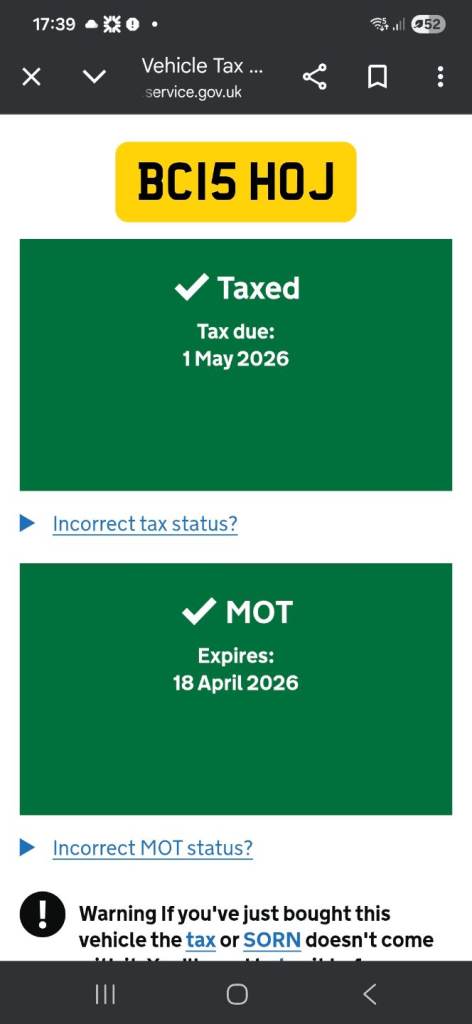 This vehicle has not been reported stolen, scrapped, exported or flagged as unroadworthy.