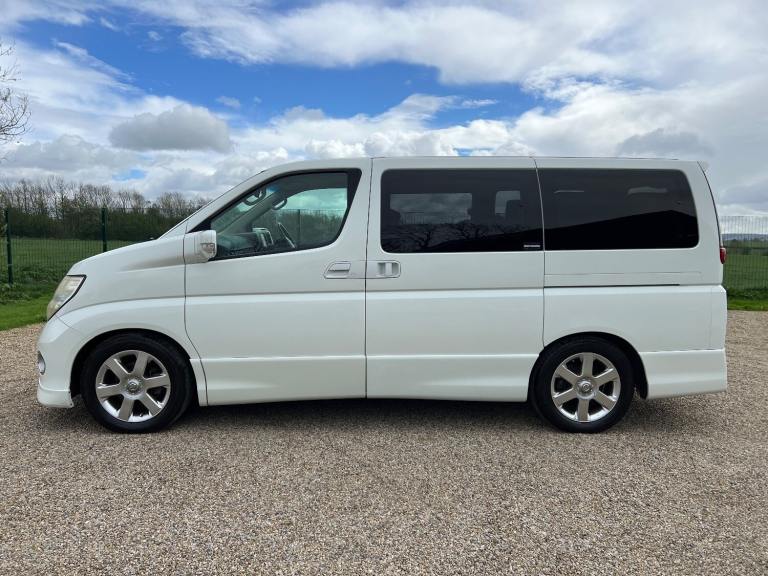 This is the Nissan Elgrand 350 Highway Star 4X4 Automatic in White Pearl , It is a top grade vehicle (4B) with 8 Seats , Half Leather and Twin power doors and has a very Low mileage of only 55000 miles . This vehicle is a cold region version which has a better internal heating system and window demisters it also has a corrosion protection package which has extended protection unlike most Japanese cars.