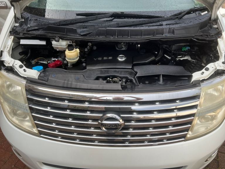 This is the 2007 Nissan Elgrand 3.5 Highway Star 4X4 Automatic in White with Twin power doors , Full leather and 8 seats . It is a good grade vehicle with only 67000 miles. This vehicle is a cold region version which has a better internal heating system and window demisters it also has a corrosion protection package which has extended protection unlike most Japanese cars.