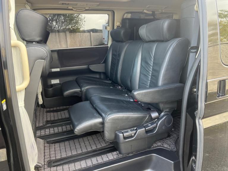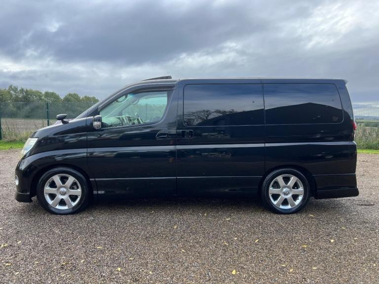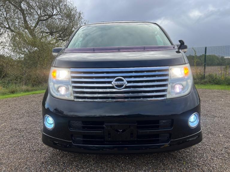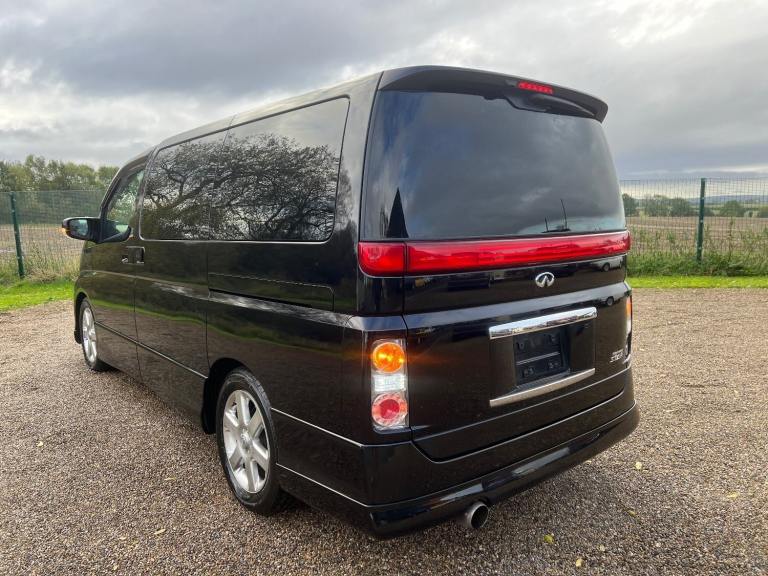 This is the 2007 Nissan Elgrand 3.5 Highway Star in Mystic Black with Twin power doors , Twin sunroofs , Full Black leather limited specification and 8 seats . It is a good grade vehicle with only 57000 miles.
