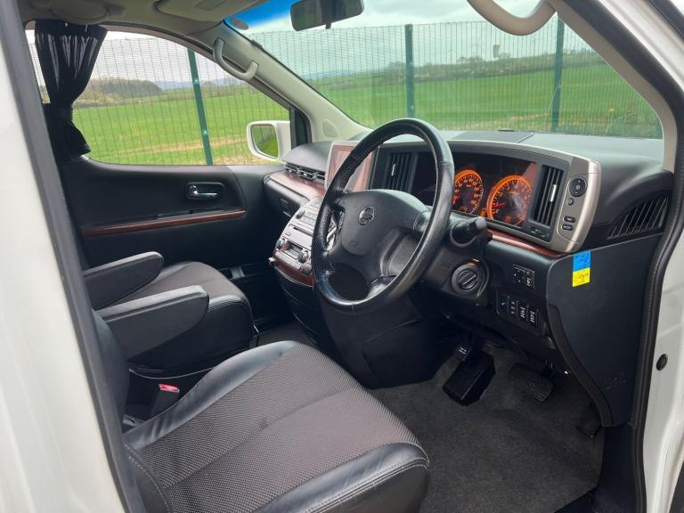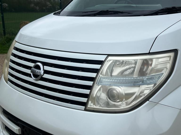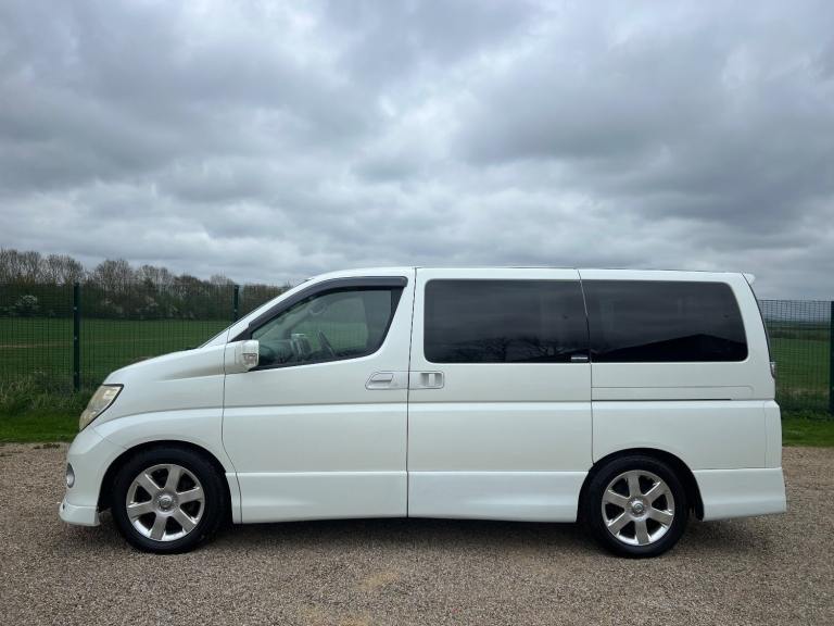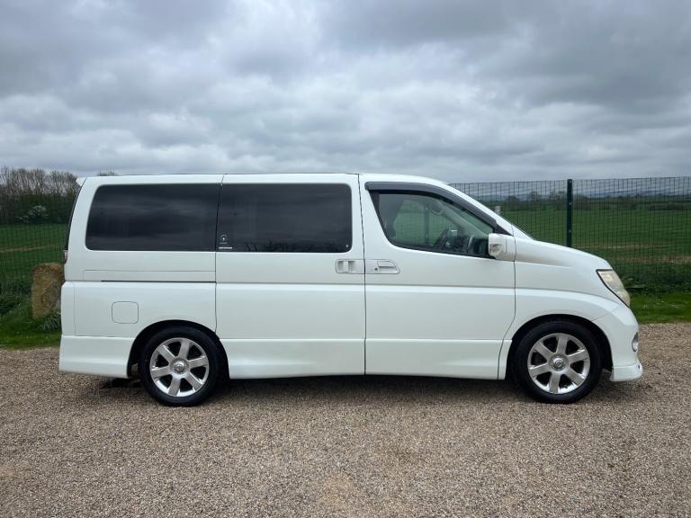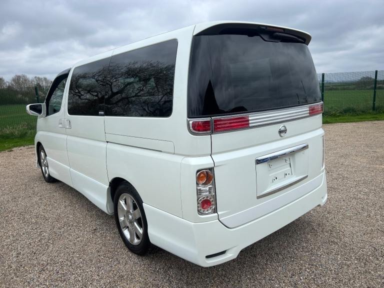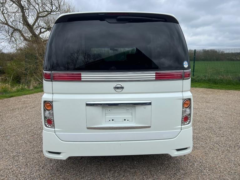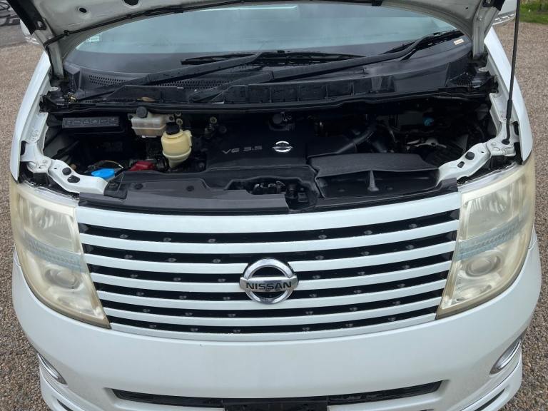 This is the Nissan Elgrand 3.5 Highway Star , Automatic in Pearl White with 8 Seats and Half Leather ,Parking cameras , 5.1ch theatre surround sound media system, It is a good grade vehicle (4) with only 54000 miles.This vehicle is a cold region version which has a better internal heating system and window demisters it also has a corrosion protection package which has extended protection unlike most Japanese cars.