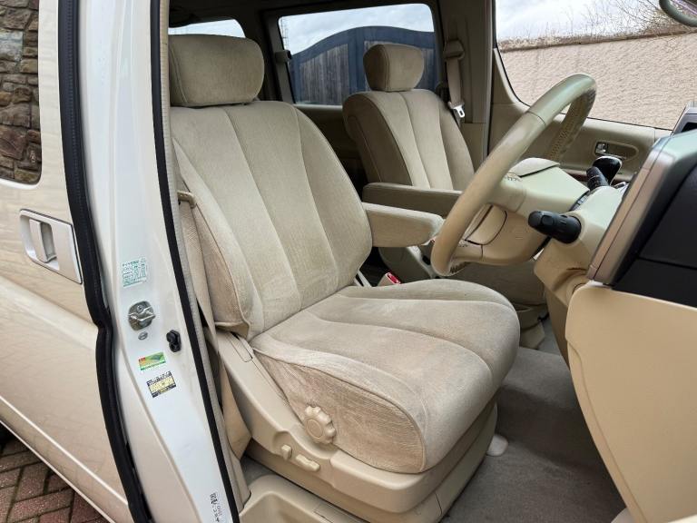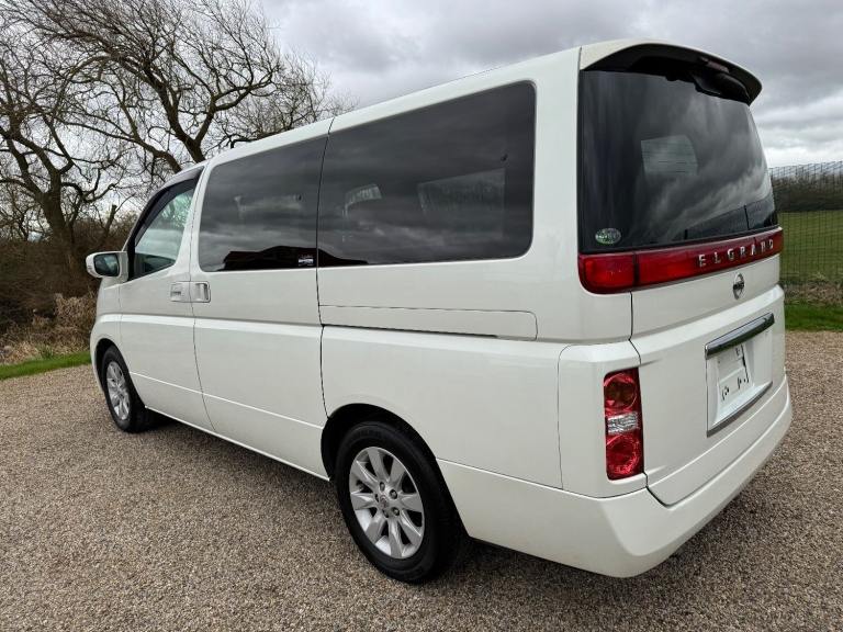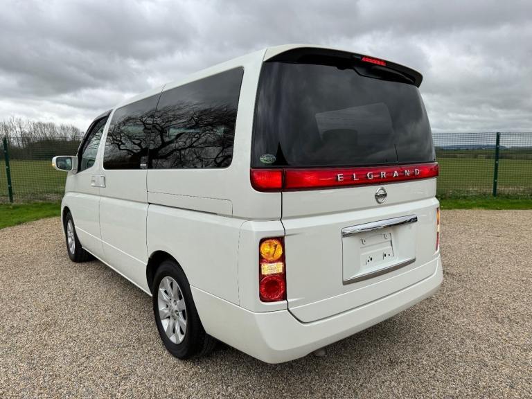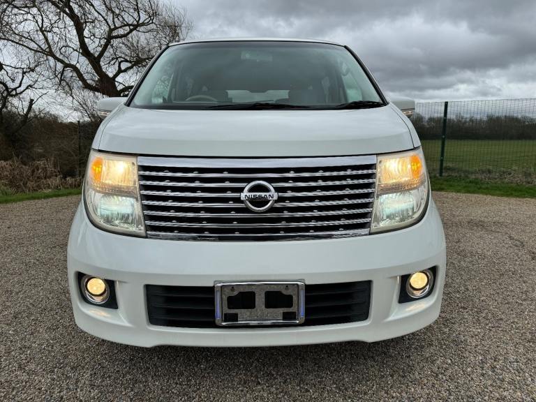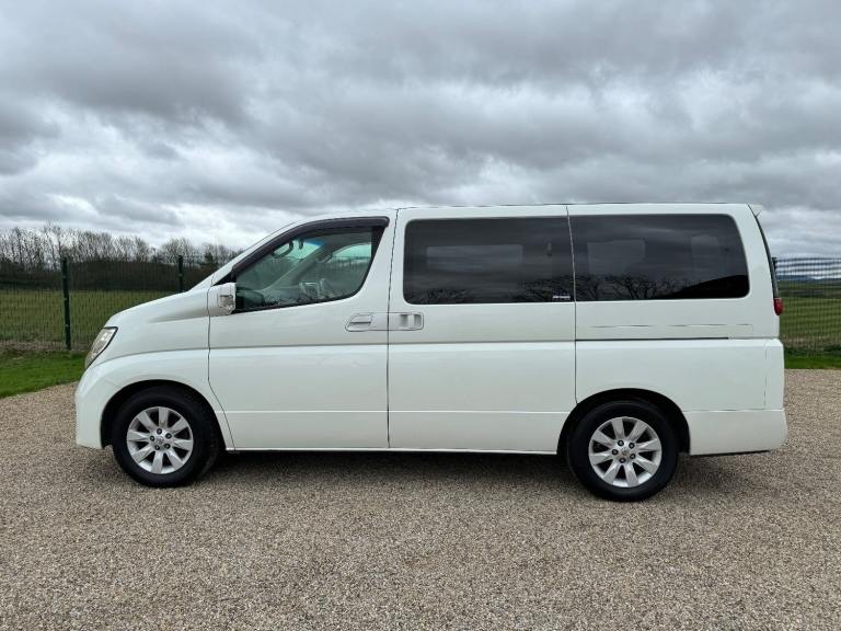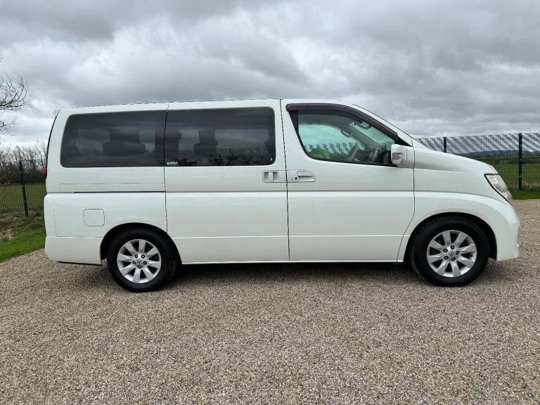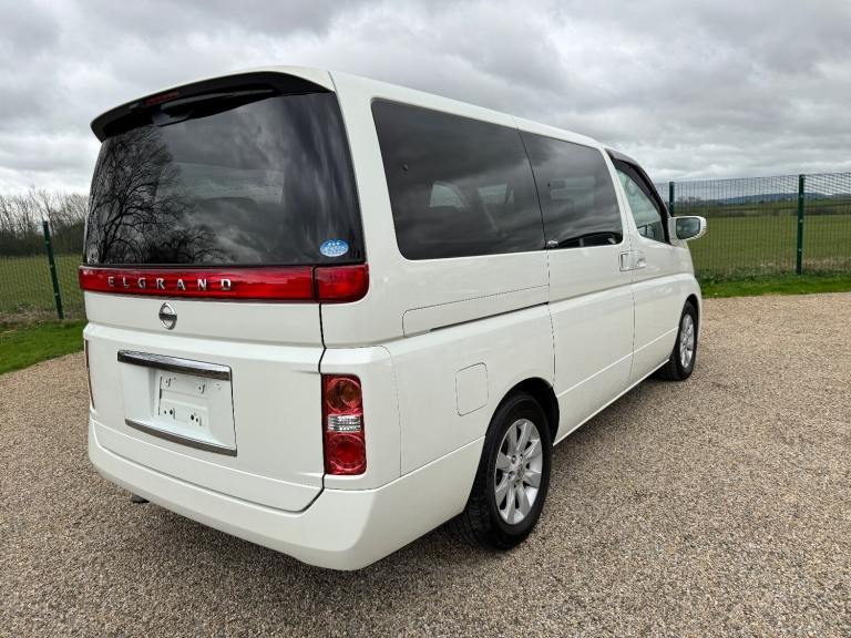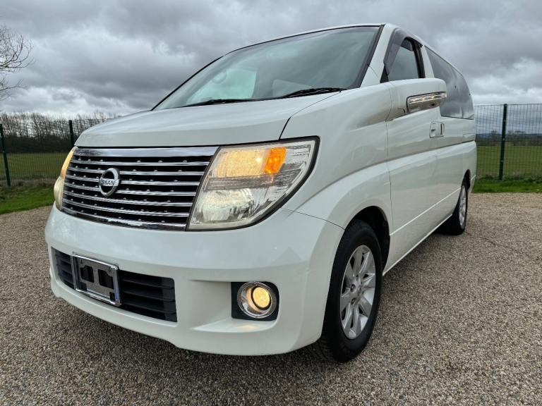 This is a Nissan Elgrand 3.5 X Automatic in White Pearl. It is a good grade , 8 Seater vehicle with Reclining business seats and a low mileage of 61000 miles .