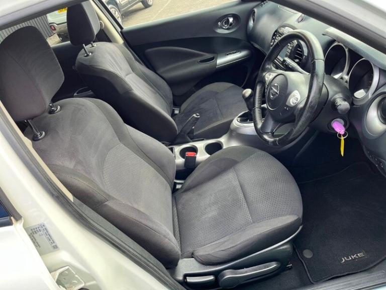 LOVELY LOW MILEAGE NISSAN JUKE 1.6 ACENTA PREMIUM 5 DOOR, FINISHED IN WHITE WITH CHARCOAL CLOTH INTERIOR, 17 ' ALLOY WHEELS, SATELLITE NAVIGATION, CLIMATE CONTROL AIR CONDITIONING, CRUISE CONTROL, REAR CAMERA, DRIVE MODES, USB / AUX INPUT, ELECTRIC WINDOWS, ELECTRIC MIRRORS, REMOTE CENTRAL LOCKING, PAS, ABS, ONLY 73,000 MILES WITH SERVICE HISTORY, HAD 7 SERVICES AND LAST DONE AT 66K, SUPPLIED WITH 2 KEYS, BEEN REFUSED CREDIT PERHAPS WE CAN HELP.If you have had problems in the past obtaining car finance please give us a call as we now have companies on board who can help.We offer flexible finance packages at very competitive rates to suit most budgets.We are situated just 5 mins from junc 28 M1 Derbyshire located in Ripley opposite Frank key builders merchants post code DE53AS.PLEASE SEE ALL OUR REVIEWS ON AUTOTRADER.ALL MAJOR DEBIT CARDS TAKEN.FREE 12 MONTHS AA BREAKDOWN COVER INCLUDED. 3 MONTHS PARTS AND LABOUR WARRANTY INCLUDED. E BAY CUSTOMERS PLEASE VISIT OUR WEBSITE FOR MORE PHOTOS