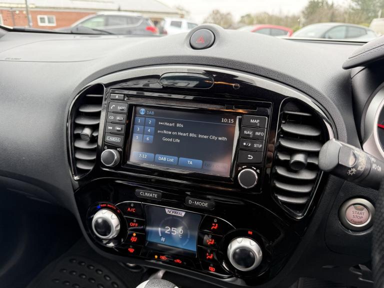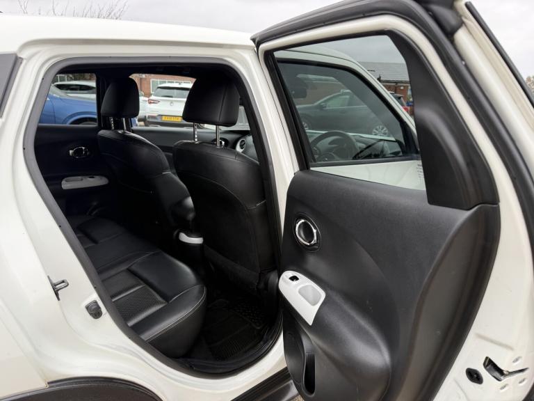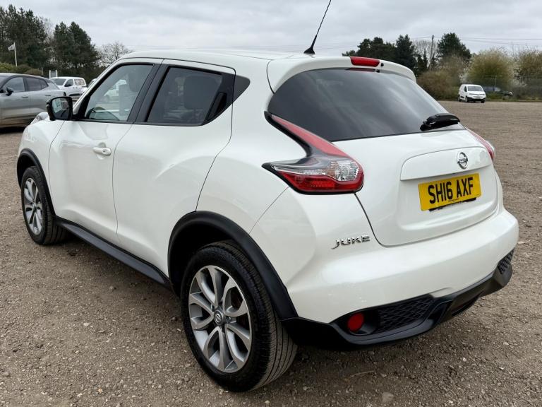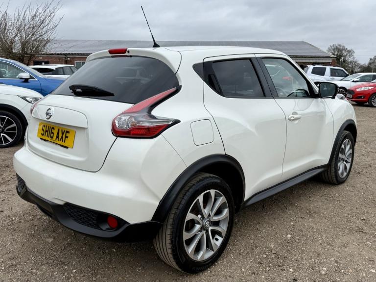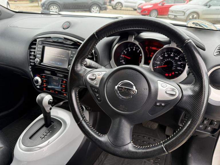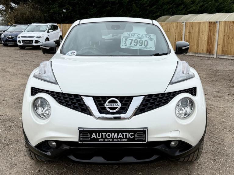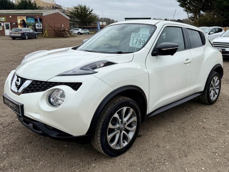 NISSAN JUKE 1.6 TEKNA XTronic AUTOMATIC, PEARL WHITE, 2016 ** A great top spec example of the ever-popular Nissan Juke 1.6 Petrol Tekna XTronic AUTOMATIC, finished to Tekna specification and offering a comfortable, smooth automatic drive. The strong proven reliable petrol engine uses a timing chain so NO cam-belt to worry about ** OUR ADVICE! Grab this one while it's still available! 12 MONTHS WARRANTY / Roadside Rescue Available 24 hours a day, 365 days a year! Finance Example £139 p/m £1750 deposit 60 months 13.1%APR SH16AXF First Reg: 31/05/2016 1.6 Petrol / 1598cc / 117 Bhp AUTOMATIC GEARBOX Only 71,332 Miles (Ave 7,133 Per Year) FSH Most Recent Service @ 70,025 Miles (Only 1307 Miles ago 02/11/2025) Auto Gearbox Serviced 21/01/2025 @ 66,494 Miles / MOT 30/10/2026 / 12 Months Warranty Included! Exterior - 17 Alloy Wheels / LED Daytime Running Lights / Automatic Headlights / Electric Folding Door Mirrors / Rear Privacy Glass Interior - Full Black Leather Interior / Heated Front Seats / Climate Control Air Conditioning / Multifunction Steering Wheel / Leather Steering Wheel Technology - NissanConnect Satellite Navigation / Bluetooth Phone & Audio / 360 Around View Camera / Touchscreen Infotainment System / USB / AUX Connectivity Convenience - Keyless Entry & Push Button Start / Cruise Control with Speed Limiter / Electric Windows / Rear Parking Camera / Rear Parking Sensors Safety - ABS Braking System / Electronic Stability Control / Multiple Airbags / ISOFIX Child Seat Mounts / Tyre Pressure Monitoring System Plus much more come and take a look! £7990 NW Cars Taverham @ Taverham Garden Centre [Website URL removed]