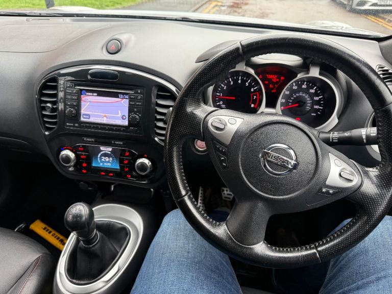 The Nissan Juke Tekna 1.6 DIG-T 6 is a 5-door hatchback with a sleek grey exterior and a sporty 1618 engine size. This 2012 model offers a smooth manual transmission and comes with a service history available. It includes safety features such as ESP, immobiliser, driver airbag, and traction control.