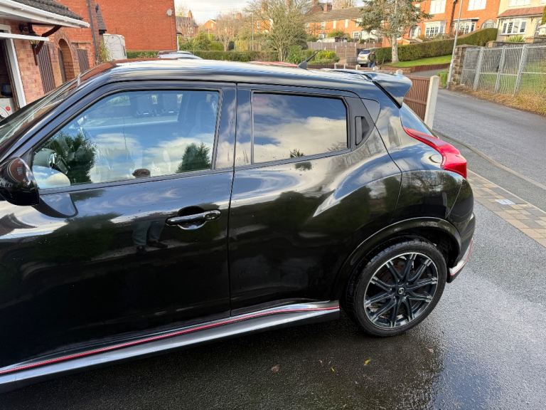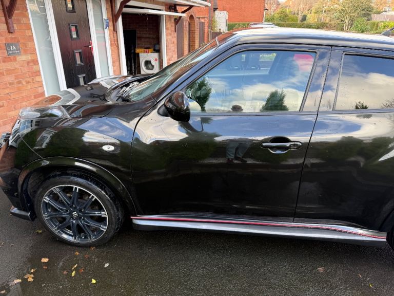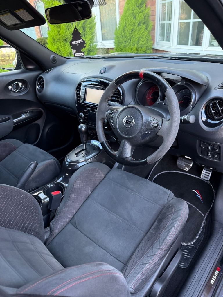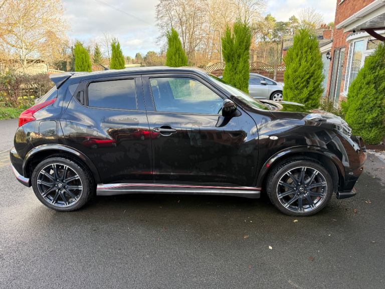 While returning a combined 38.2 MPG.This Juke Nismo stands out with its bold styling, sports body kit, Electric heated mirrors. 18"" Black / Silver alloy wheels & brand new spare wheel & privacy glass. Inside it features sports seats, heated front seats, climate control, and Nissans Connect sat nav system. A full range of safety and comfort features ensure it's practical as well as fun to drive. Please note, this vehicle .Well-maintained vehicle this high-spec Juke Nismo offers performance, practicality, and unique styling all wrapped into one compact SUV.-Key Features* * 1.6L Turbo Petrol, 7-speed CVT, 200 BHP* **Drivetrain:** 4WD (Four-Wheel Drive)* **Performance:** 0 to 60 mph in 8.2 seconds. Top speed: 124 mph* **Fuel Economy:** 38.2 MPG (combined)* **CO2 Emissions:** 169 g/km* **Transmission:** Semi-automatic---Technology & Comfort* Nissan Connect satellite navigation system* Bluetooth connectivity & USB port* Rear-view camera & reverse parking aid* Climate control & cruise control* Heated front seats & sports seats* 6-speaker audio system with CD/MP3 & steering controls---Exterior & Styling* 18"" Nismo alloy wheels* LED daytime running lights & automatic headlights* Sports body kit, rear spoiler, side skirts* Privacy glass on rear windows Black body colour with black styling accents---Safety & Security* Front, side, and curtain airbags* ABS + EBD + Brake Assist* Traction control & ESP* Alarm & immobiliser* ISOFIX child seat anchor points* Intelligent 2 keys & remote central locking.