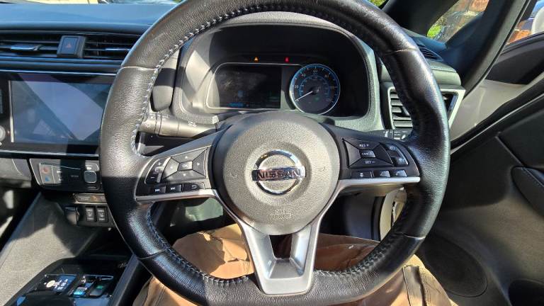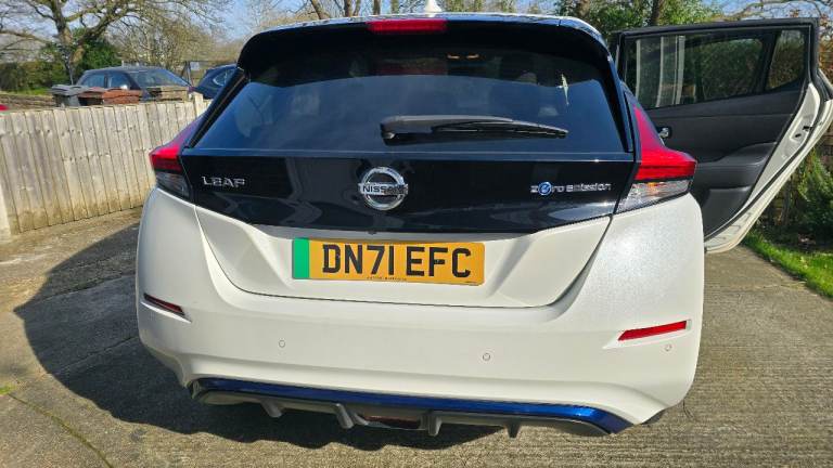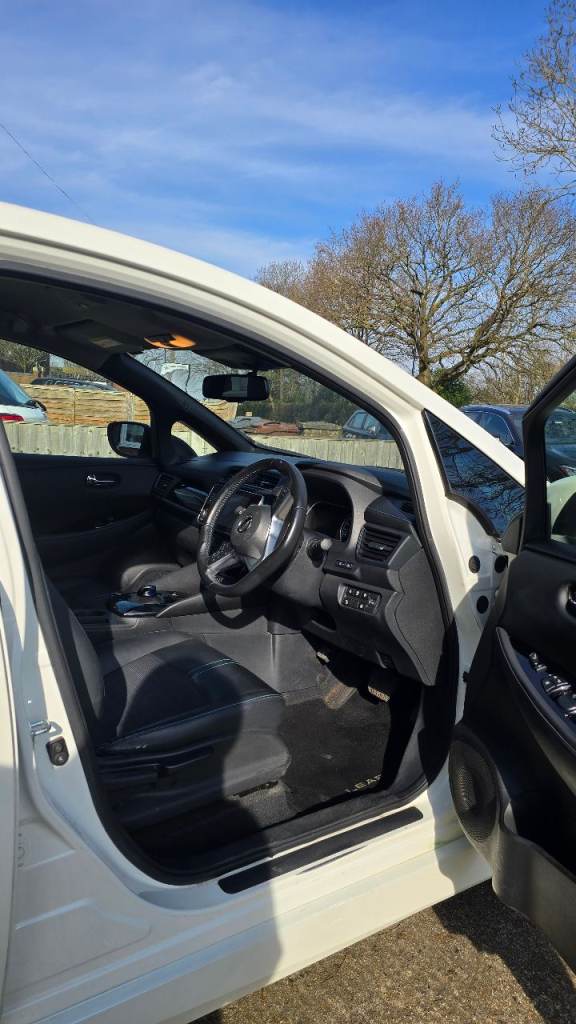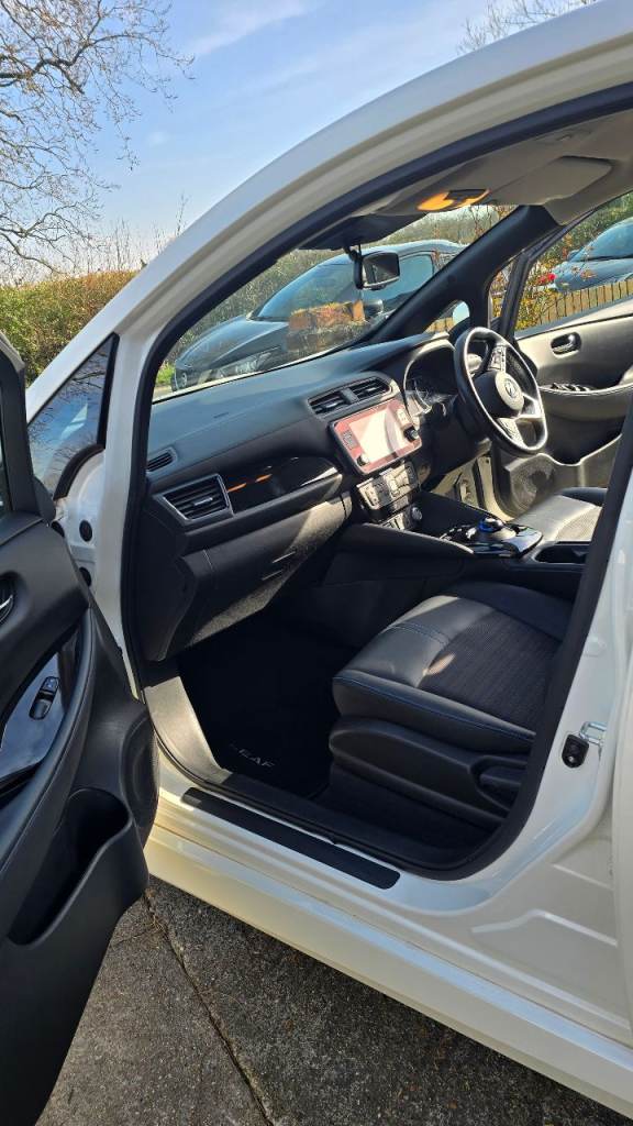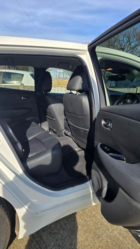 17in Alloy Wheels, 50kW CHAdeMO Quick Charger, 6.6kW AC On Board Charger, 7in Combimeter, 8in Touchscreen Entertainment System, Alarm - Thatcham, Audio System with 6 Speakers, Auto Dimming Rear View Mirror, Automatic Air Conditioning, Blind Spot Intervention, Blind Spot Warning, DAB Radio with Apple CarPlay and Android Auto, Door Handles - Chrome, E-Pedal, EVSE 6M or Mode 3 - 6M, Electric Folding Door Mirrors, Electric Parking Brake, Front Fog Lights, Gloss Black B-pillar, Halogen Headlamps with LED Signature, Headlights - High Beam Assist, Heat Pack, Heat Pump, Illuminated Charge Port, Intelligent Auto Headlights, Intelligent Cruise Control, Intelligent Emergency Braking with Pedestrian Recognition, Intelligent Lane Intervention, Intelligent Trace Control, Lane Departure Warning, Manually Adjustable Passenger Seat - Slide and Recline, Metallic Blue Rear Bumper Accents, Nissan Connect Services, Nissan i-Key and Start Push Button, NissanConnect Satellite Navigation System, Rear Cross Traffic Alert, Rear Privacy Glass, Shark Fin Antenna, Tech Pack, USB Port