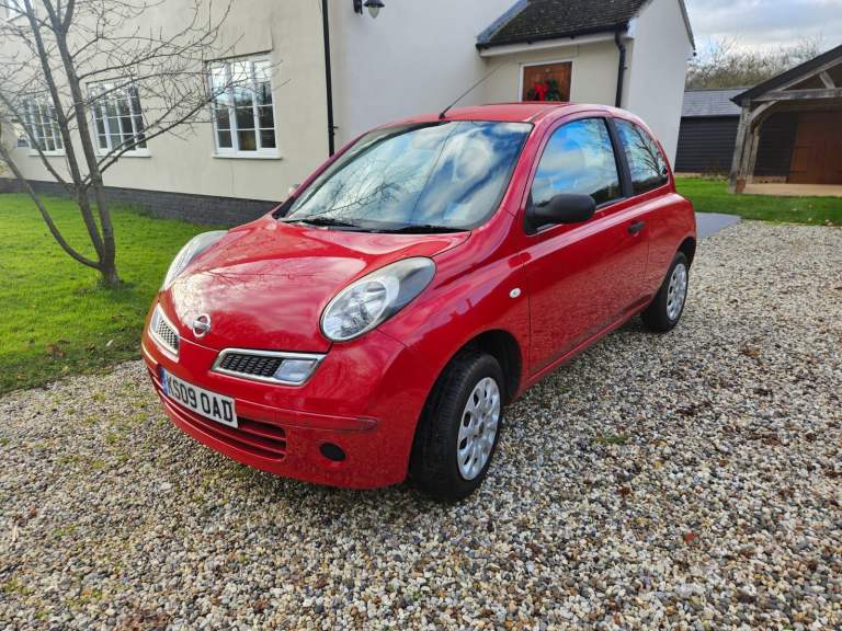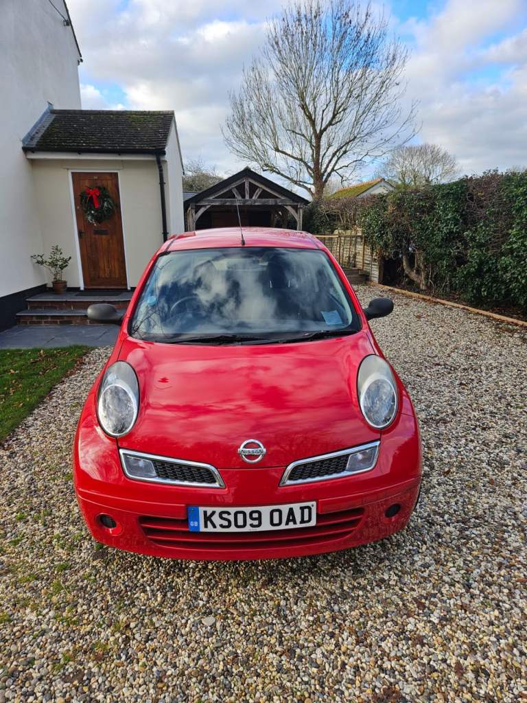 2009 Nissan Micra in red, manual 3-door. Ideal first car or economical daily runaround.