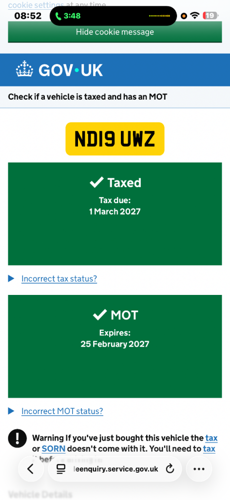 This vehicle has not been reported stolen, scrapped, exported or flagged as unroadworthy.