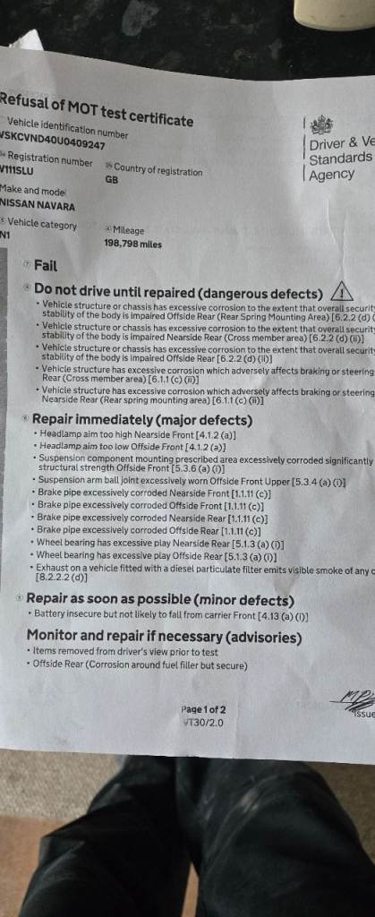 The Nissan Navara Tekna 2011 with a black exterior and diesel fuel type is a reliable and versatile vehicle with a range of safety features including driver airbag, passenger airbag, anti-lock brakes, and traction control. This 5-seater vehicle has a 2.4L engine size, 4WD drivetrain, and a part service history available. With features such as power windows, climate control, and cruise control, this Nissan Navara offers a comfortable and convenient driving experience., V5C registration document, and is equipped with alloy wheels and a tow bar for added functionality. I'm located in north devon Google it before buying, none of this buying then ohhh your a long way away from
