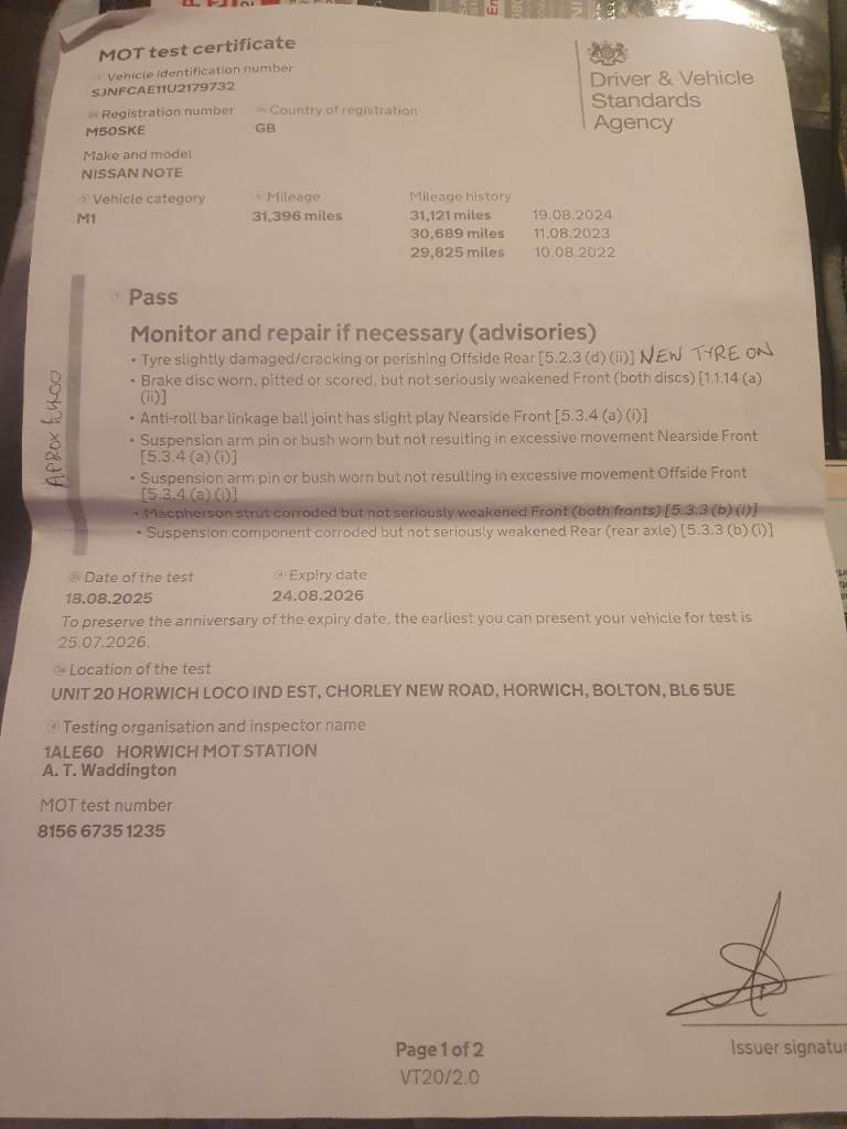 6 non urgent advisories on MOT (see last photo)