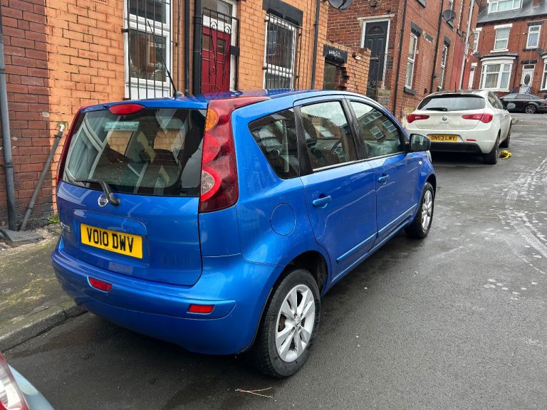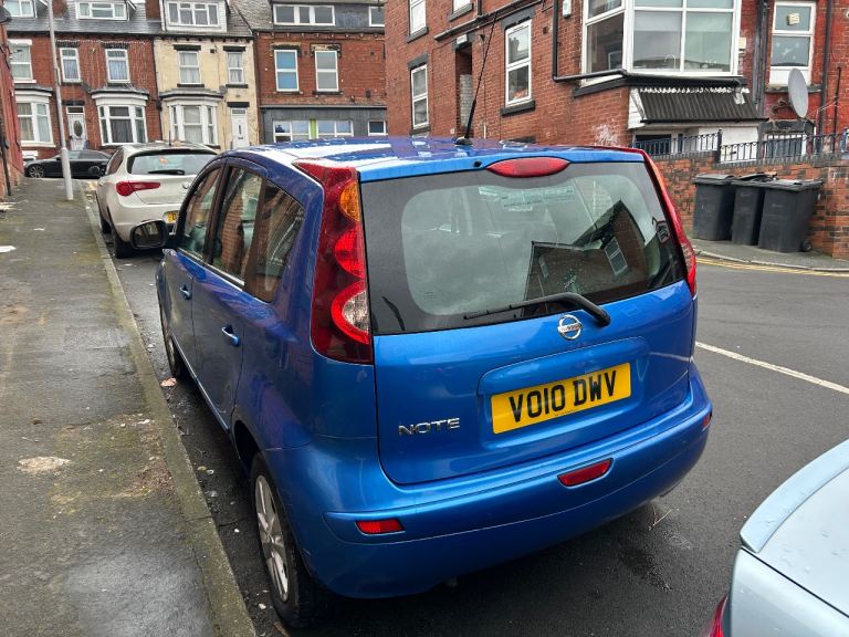 Nissan note automatic 2010 blue petrol 5 door mpv full service history 2 keys power steering remote central locking electric windows electric mirrors folding rear seats head restraints alloy wheels recent tyres ideal first car cheap tax and insurance based in Leeds any inspection welcome odd mark hear and there